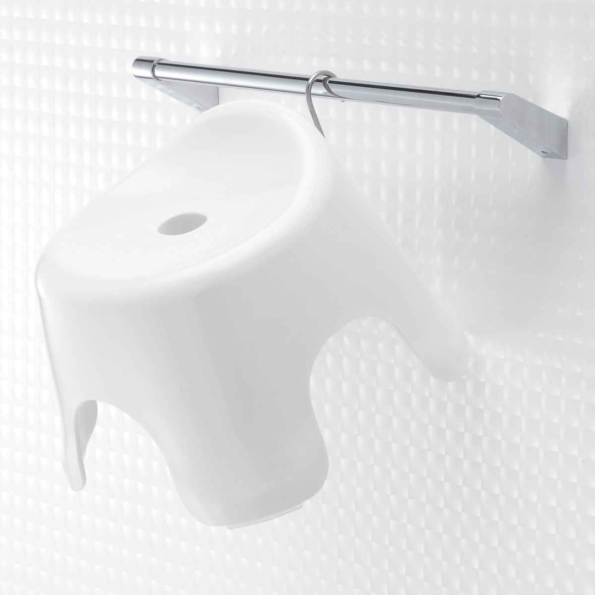 くぼみに引っ掛けて干せる風呂イスの裏側は、S字フックに引っ掛けられるくぼみがあります。タオルバーなどに引っ掛けて干すことができます。