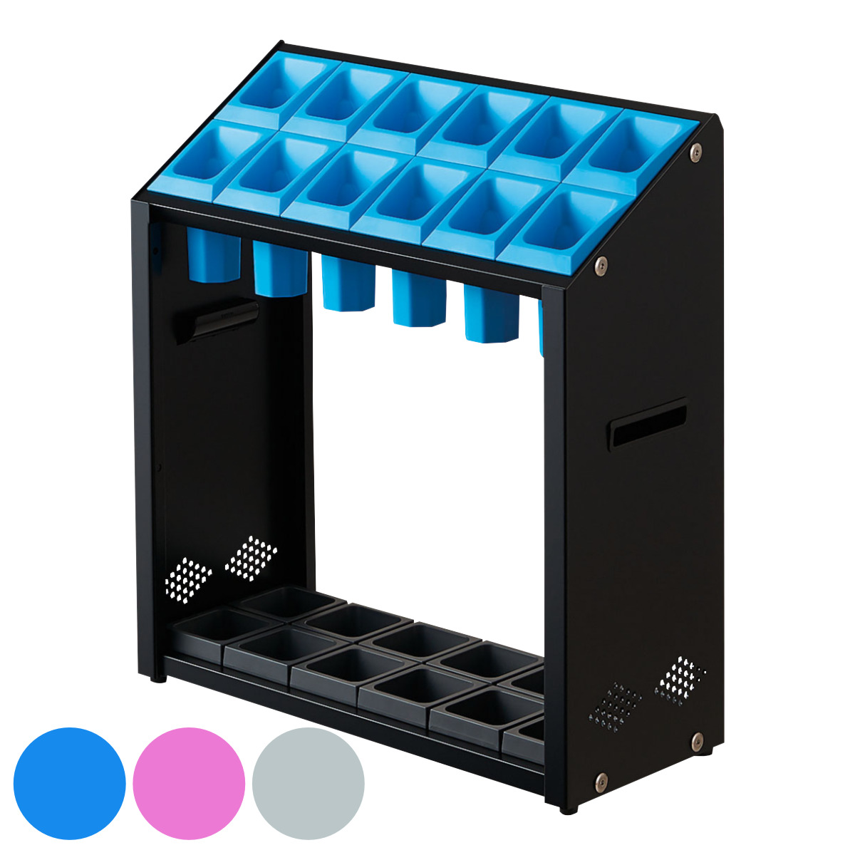 デザイン傘立て12本用機能性と安全性に配慮しており、子どもから大人まで傘が取り入れしやすくなっています。見た目もスッキリし、傘の定位置が定まります。