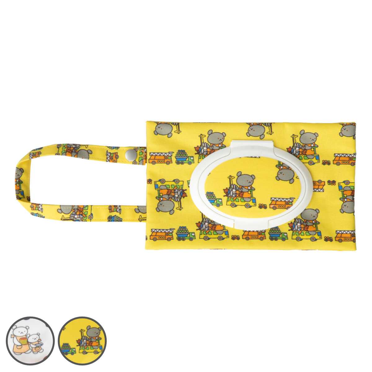ウェットティッシュの持ち運びに便利なポーチです。赤ちゃんのおしり拭きを入れるのにもお使いいただけます。フタは片手で簡単に開閉できるので、手が汚れていたり、急いでいる時も速やかにシートを取り出す事ができます。人気絵本「こぐまちゃん」に出てくる可愛いキャラクターがデザインされています。