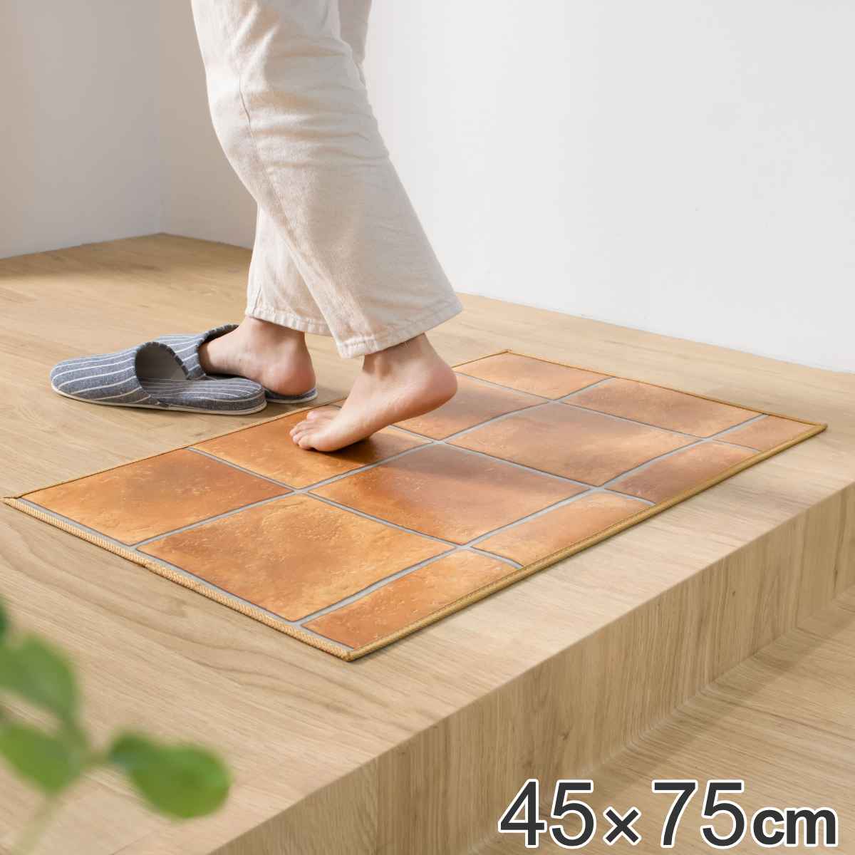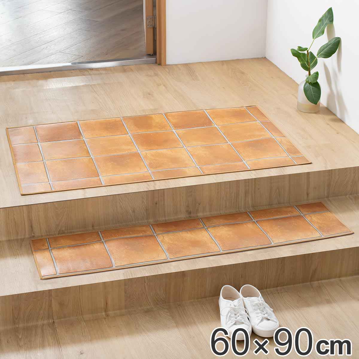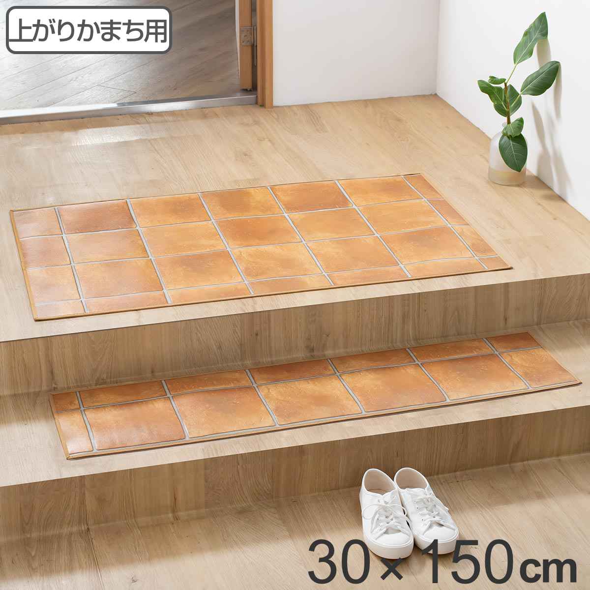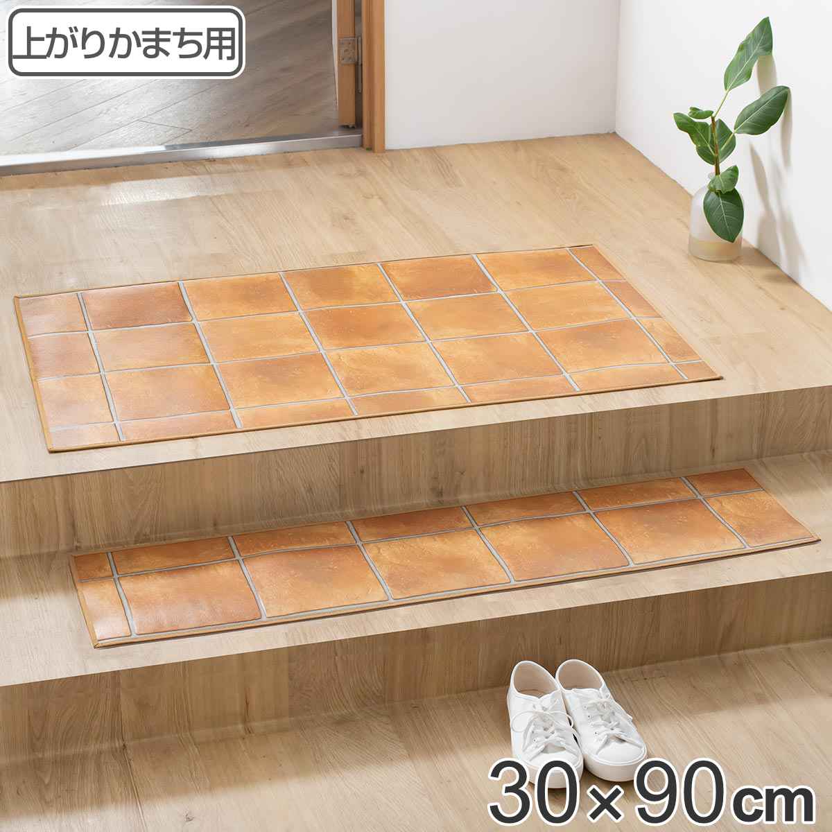 玄関マット 室内用 30×90cm テラコッタ 撥水加工 ( 玄関 マット 框 屋内 拭ける 室内 厚さ5mm キッチン 撥水 防水 抗菌 防カビ 滑り止め おしゃれ )