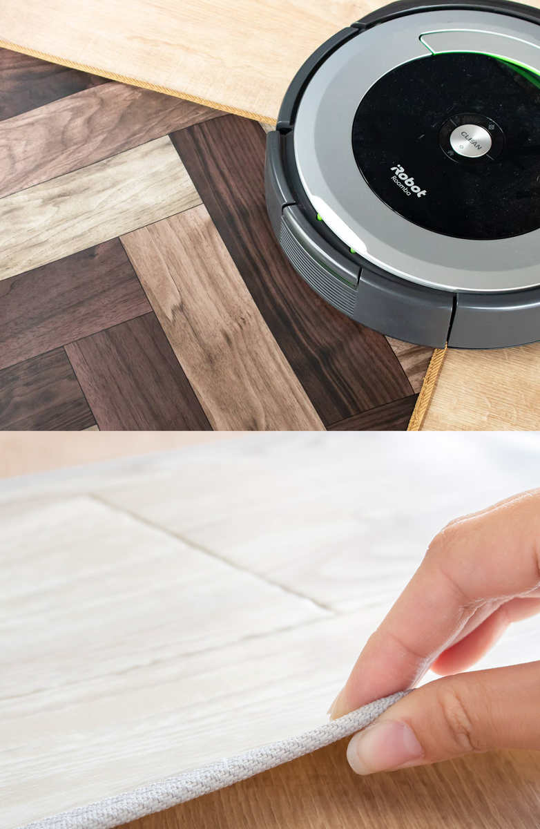 厚さ約5mmと適度な厚みなのでつまづきにくいです。お掃除ロボットも引っかからずスムーズに動きます。