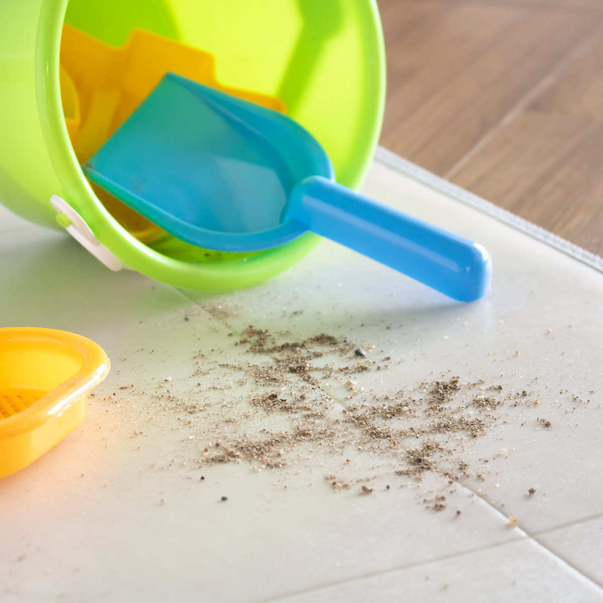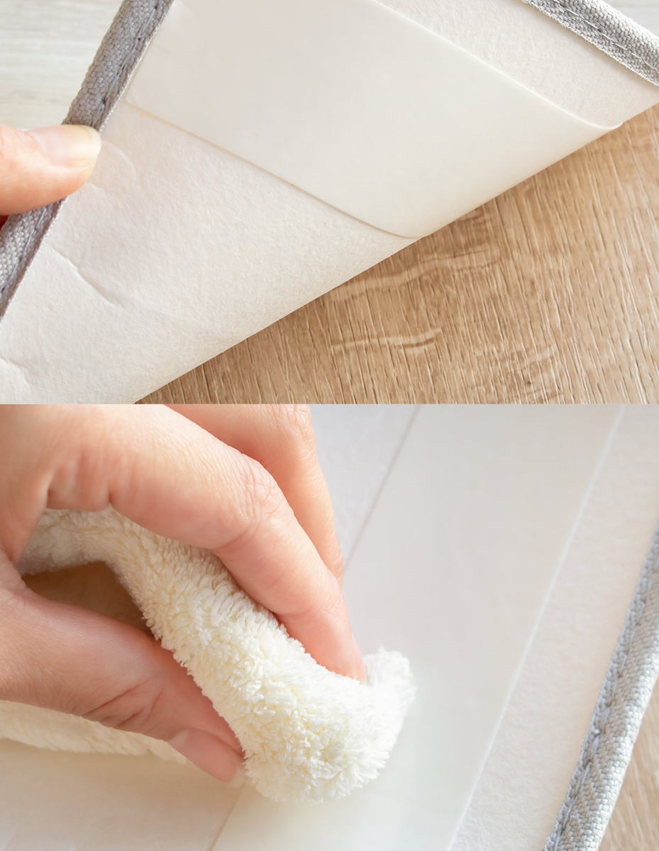 普段のお手入れは、よく絞った雑巾やウエットシートでの水拭きで充分です。お洗濯不要なので天候に左右されたり、干す場所を確保せずにお使いいただけます。お子様が砂や土を持ち帰ってしまってもサッと簡単にお手入れできます。