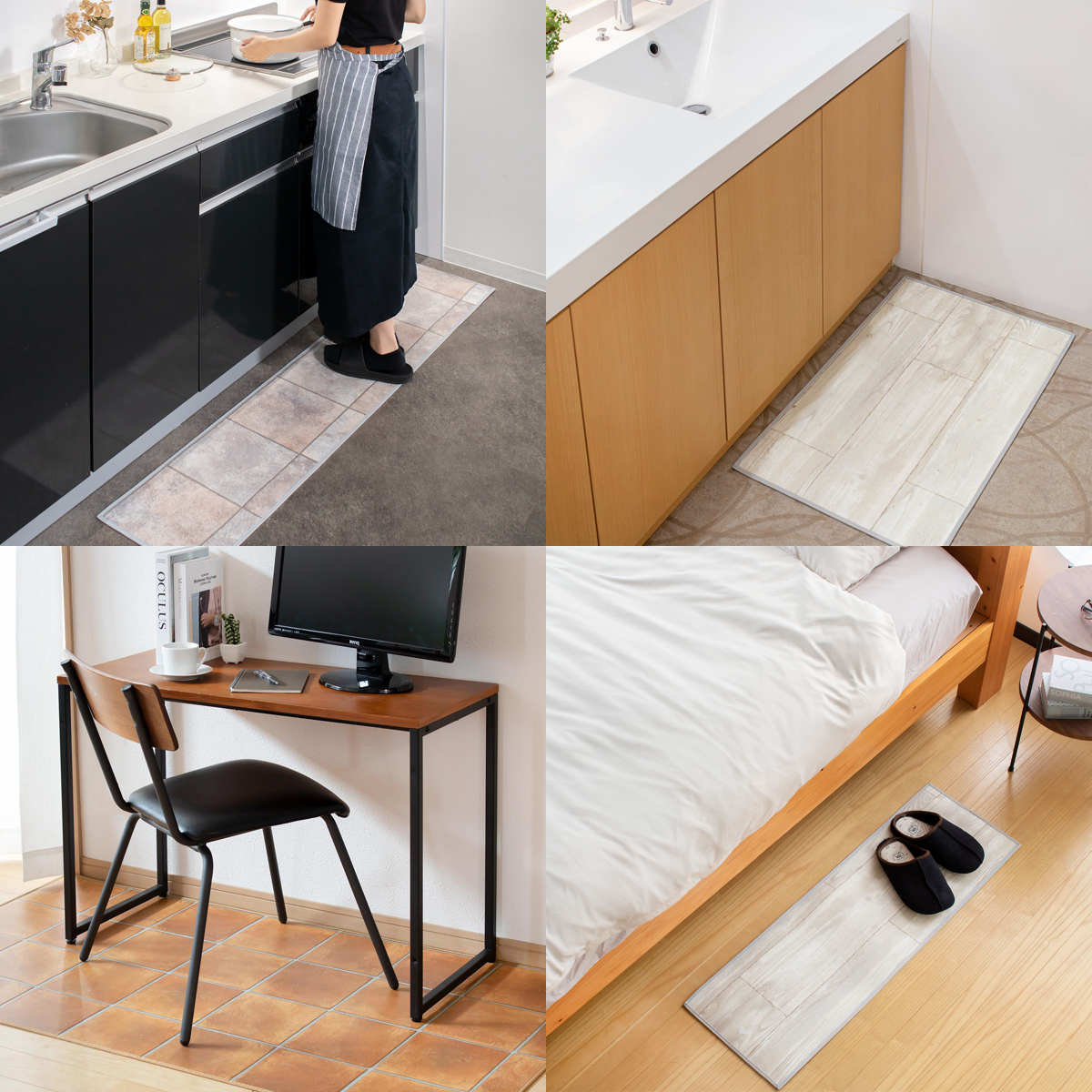 キズや汚れを守ってくれる万能なマットは玄関だけでなく、様々な場所でご使用頂けます。水や油が付きやすいキッチンや洗面、ランドリー、子供部屋にもピッタリです。