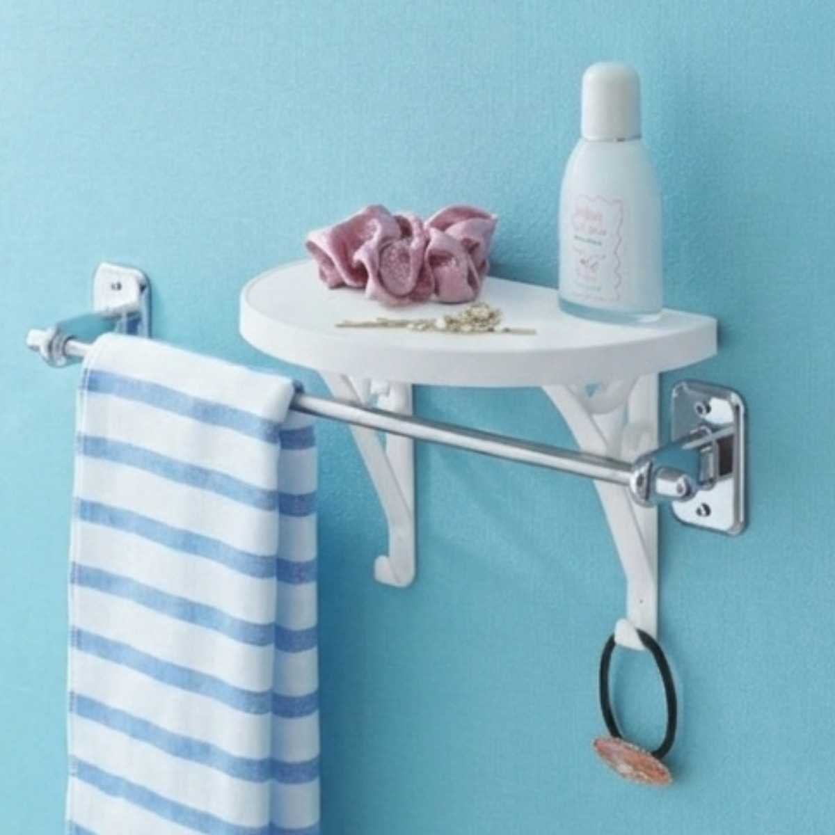 ●タオルバーに差し込むだけで設置できるラウンド型のシェルフです。