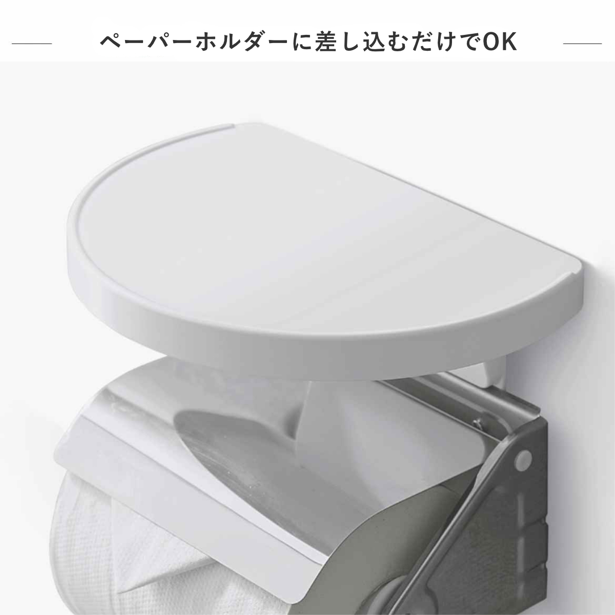 ●ペーパーホルダーの背面に差し込むだけで設置できる、小物置き用のミニシェルフです。
