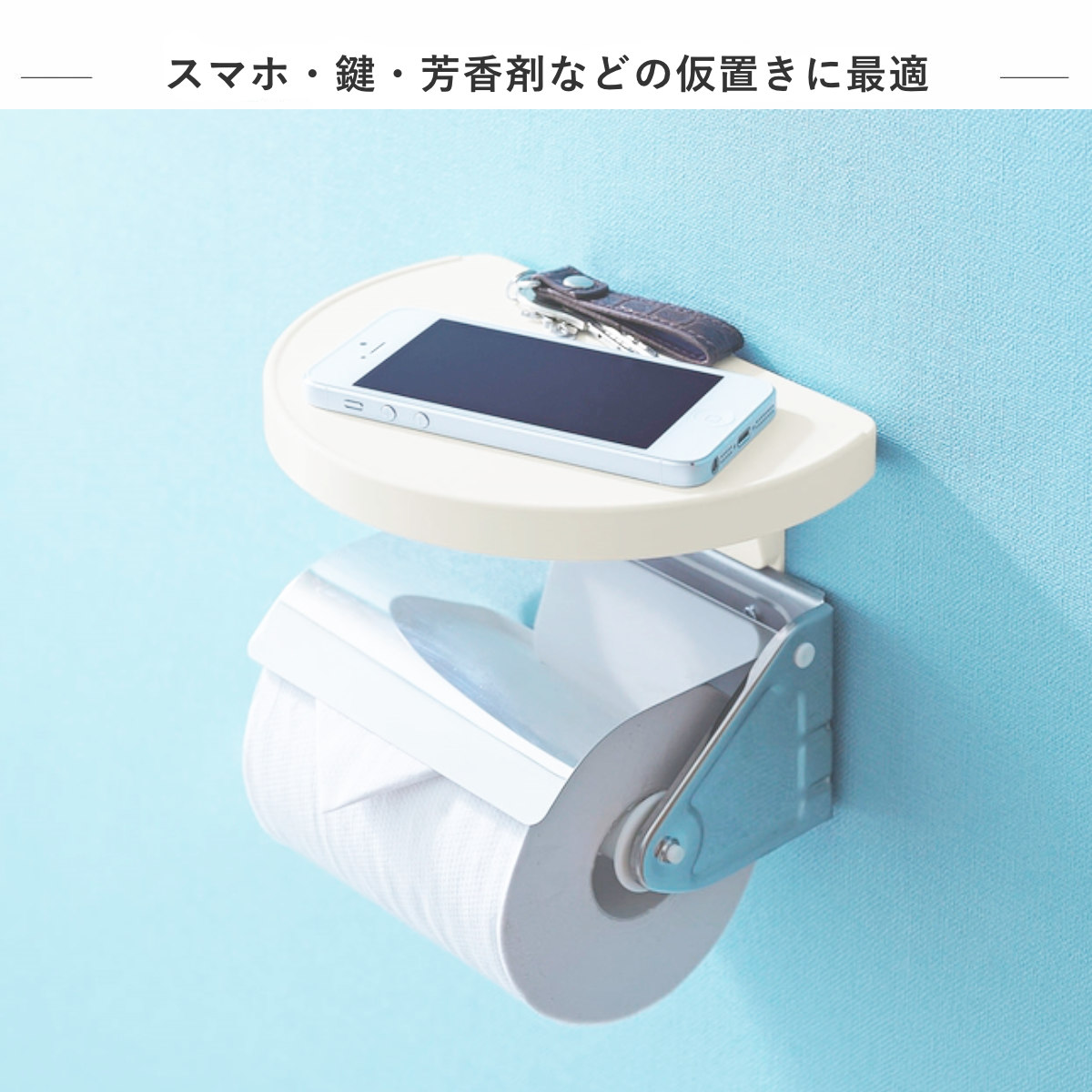 ペーパーホルダーの背面に差し込むだけで設置できる、小物置き用のミニシェルフです。工事不要で簡単に取り付けられます。手軽にちょっと欲しいスペースを作り出すことができます。