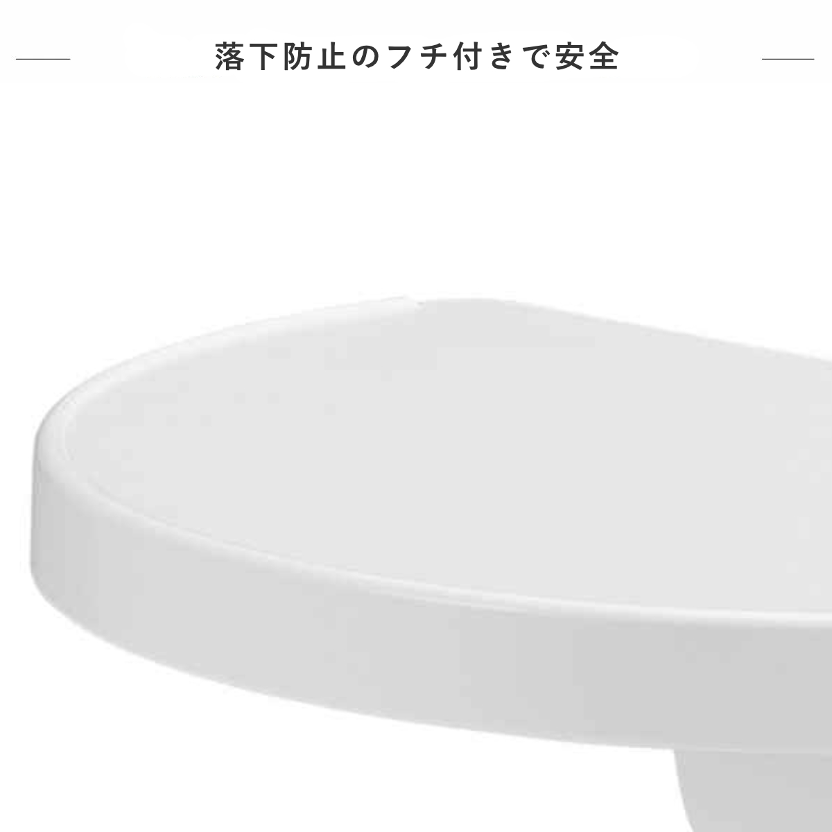 置いた物が滑り落ちにくい設計です。丸みのある物や転がりやすい小物でも、しっかり安定して置けます。