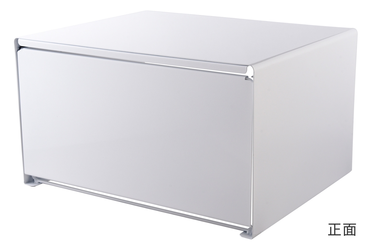 安心の日本製で、ホワイトカラーと無駄のないシンプルなデザインでどんなキッチンにも馴染みます。また、背面と底には板のないタイプなので気軽に設置でき、キッチンカウンターに置けば両方から取り出しもできます。底にはすべり止めのシリコンゴムが付いています。