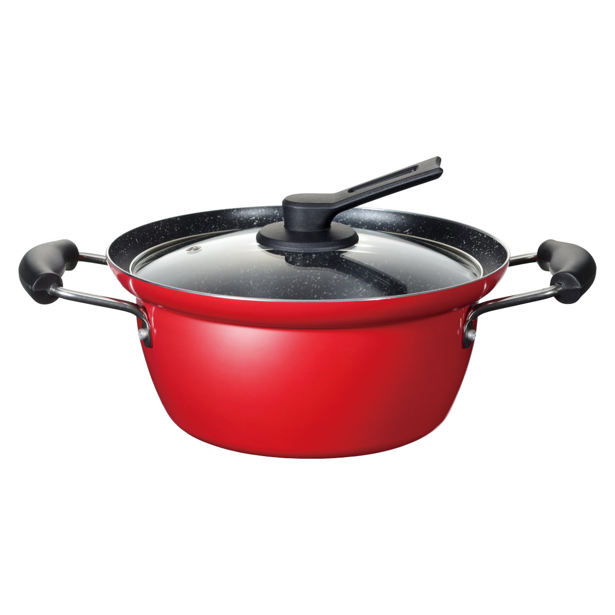 煮込み料理のための実用的な両手鍋フチ付でふきこぼれにくく、クイックマーブルコートでこびりつきにくいのでお手入れ簡単です。付属のガラス蓋は自立するので置き場所に困りません。直火やIHも使用可能なので、いろんな場面でお使いいただけます。毎日手軽に使えるよう、いろんな工夫が詰まった実用的な両手鍋です。