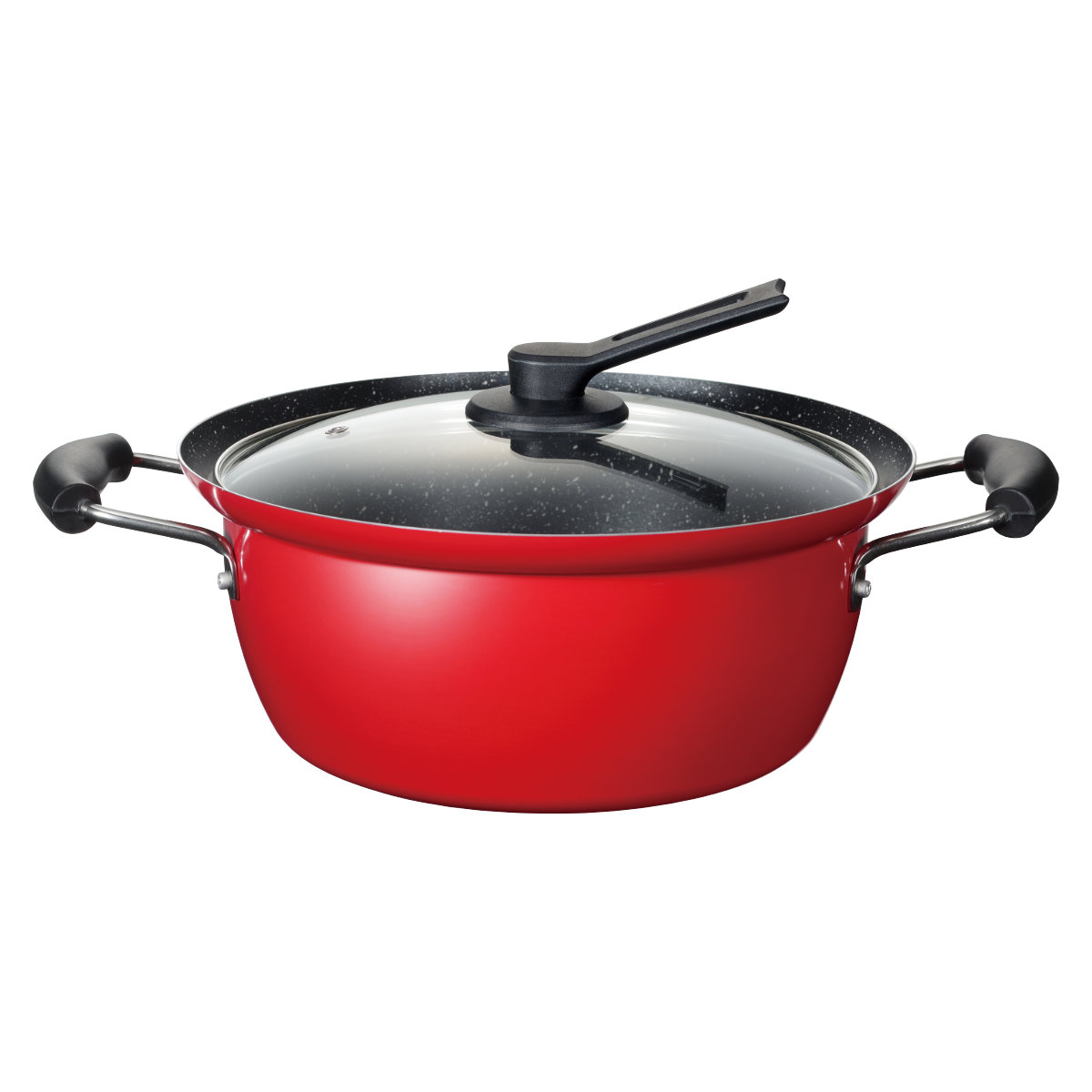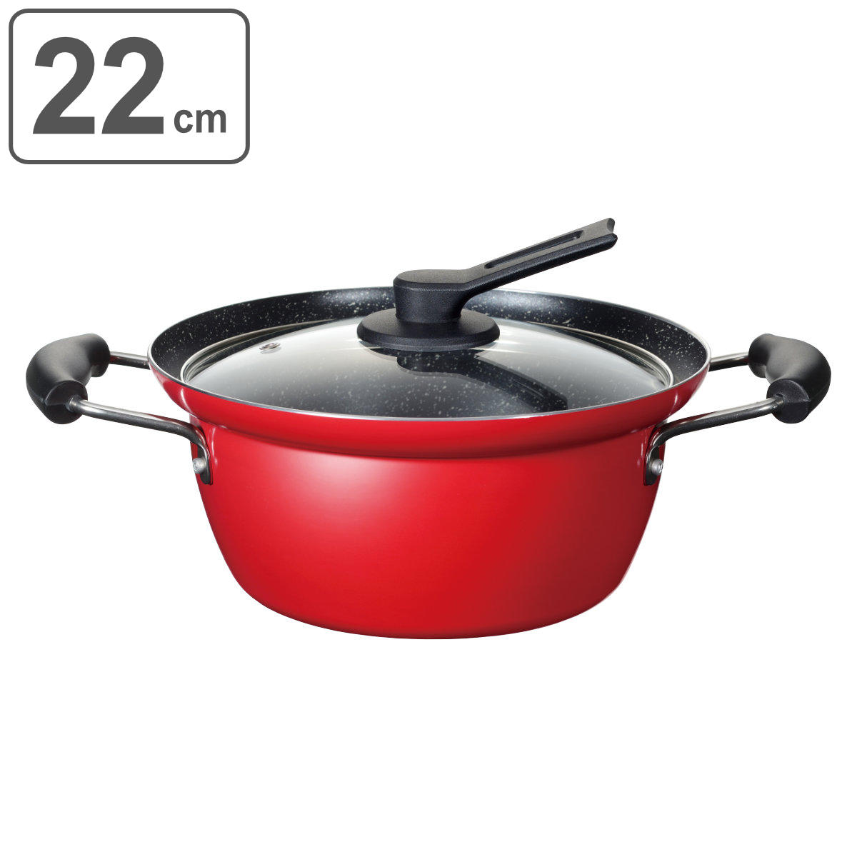 煮込み料理のための実用的な両手鍋フチ付でふきこぼれにくく、クイックマーブルコートでこびりつきにくいのでお手入れ簡単です。付属のガラス蓋は自立するので置き場所に困りません。直火やIHも使用可能なので、いろんな場面でお使いいただけます。毎日手軽に使えるよう、いろんな工夫が詰まった実用的な両手鍋です。