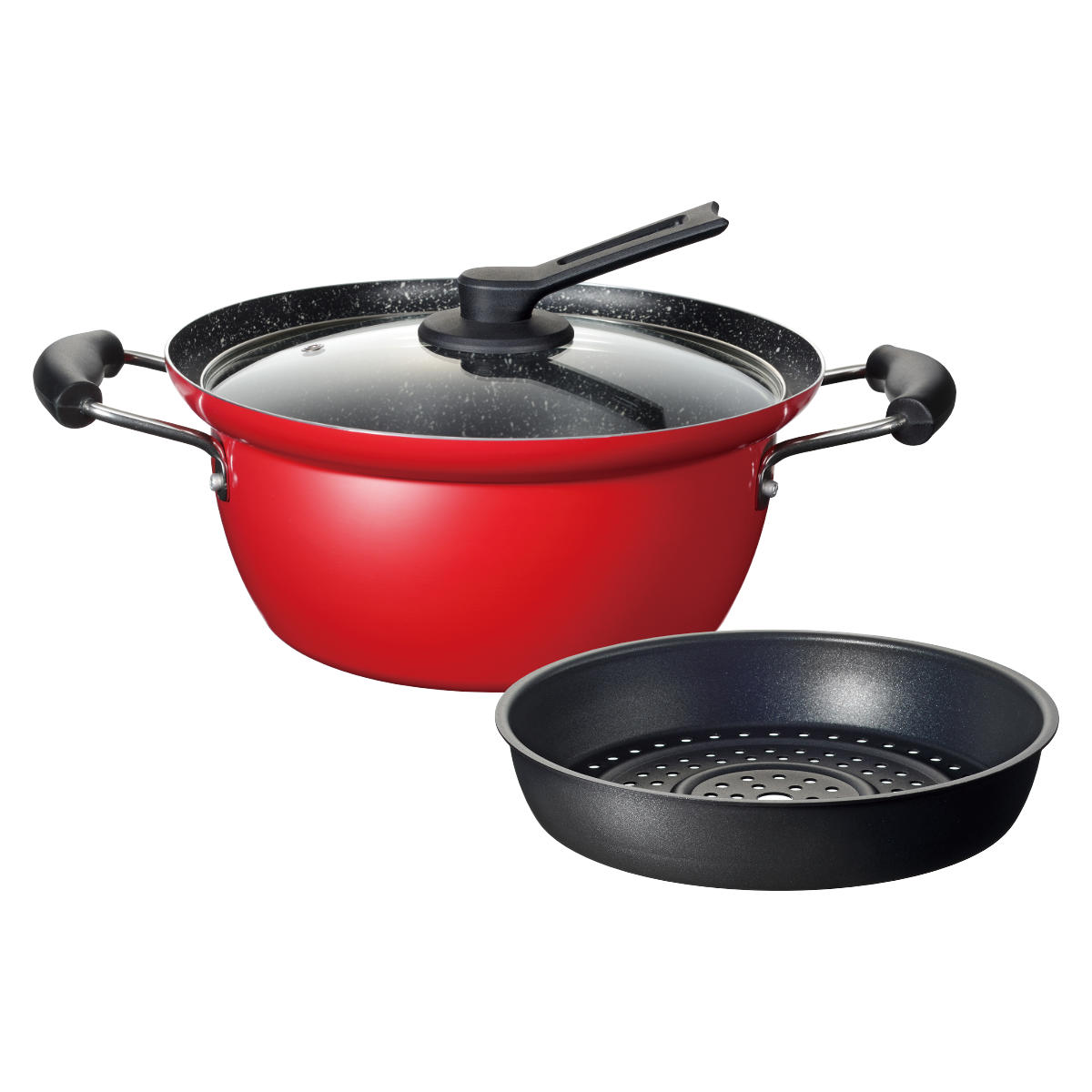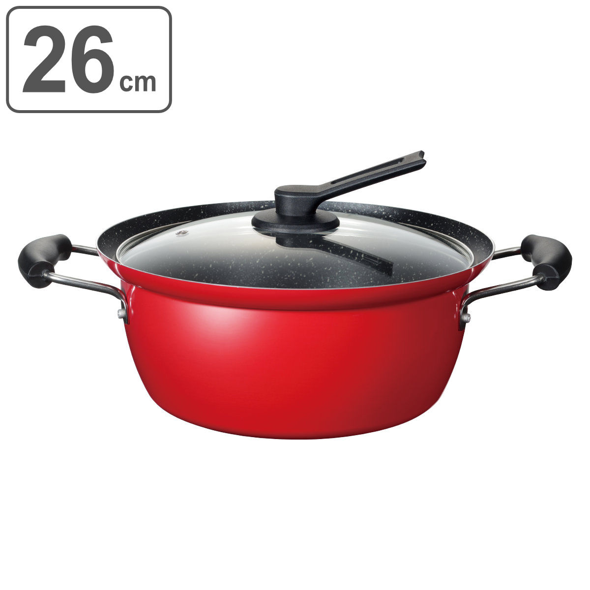 | 材質 | 本体:アルミニウム合金(内面/ふっ素樹脂加工、外面/焼付塗装) はり底:ステンレス鋼 ハンドル・つまみ:フェノール樹脂 ガラス蓋:強化ガラス |