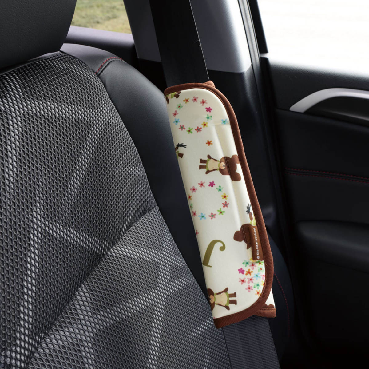●シートベルトに簡単に装着できる面ファスナーが付いています。