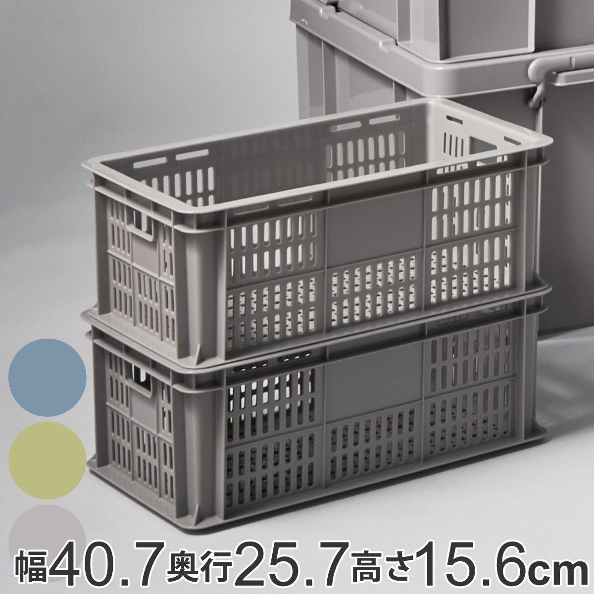 側面も底面もスリット穴仕様で通気性が良く、野菜・果物などの食品類や植物などを収納するのに最適です。プラスチック製で水に濡れても安心なので水周りやアウトドアシーンでもお使いいただけます。