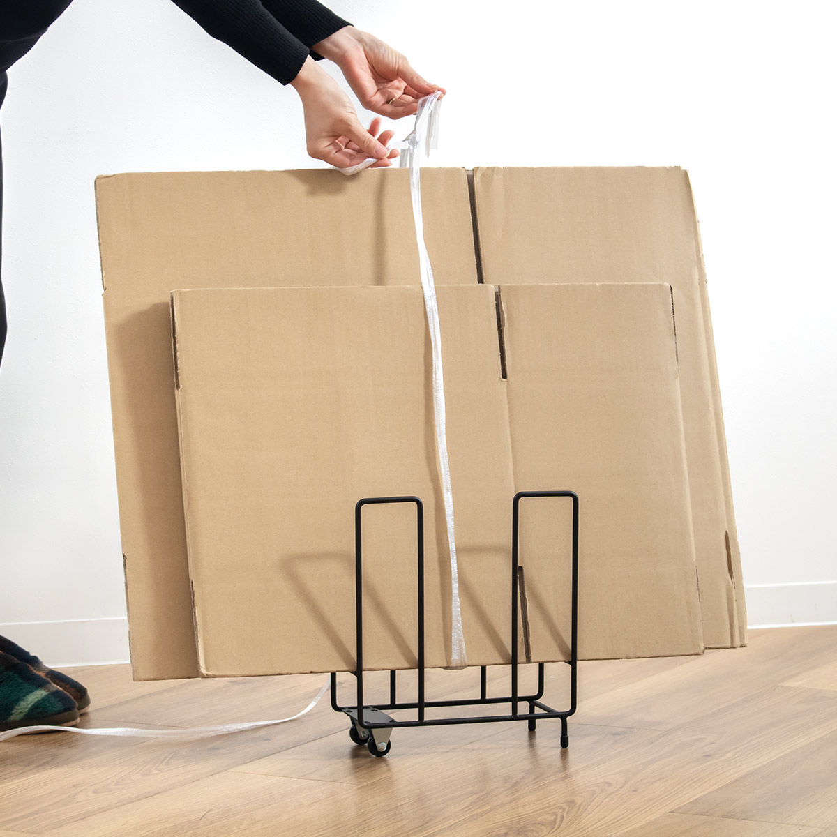 ダンボール収納 収納ラック ストッカー 省スペース シンプル ブラック キャスター付き スチール 紙袋 片付け すっきり スッキリ 紐 縛りやすい 約8枚 便利グッズ キッチン 玄関 段ボールストッカー 段ボール置き ダンボール置き 入れ おしゃれ お洒落 オシャレ 分別 収集 保管 段ボール立て 整理整頓 整頓 スッキリ収納 便利 収納したまま 結束 黒 幅12×奥行25×高さ28.5cm 幅12