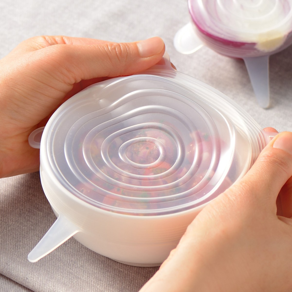 伸ばしてピッタリ丸型エコラップ●シリコーン素材でつくられた繰り返し使える丸型ラップです。