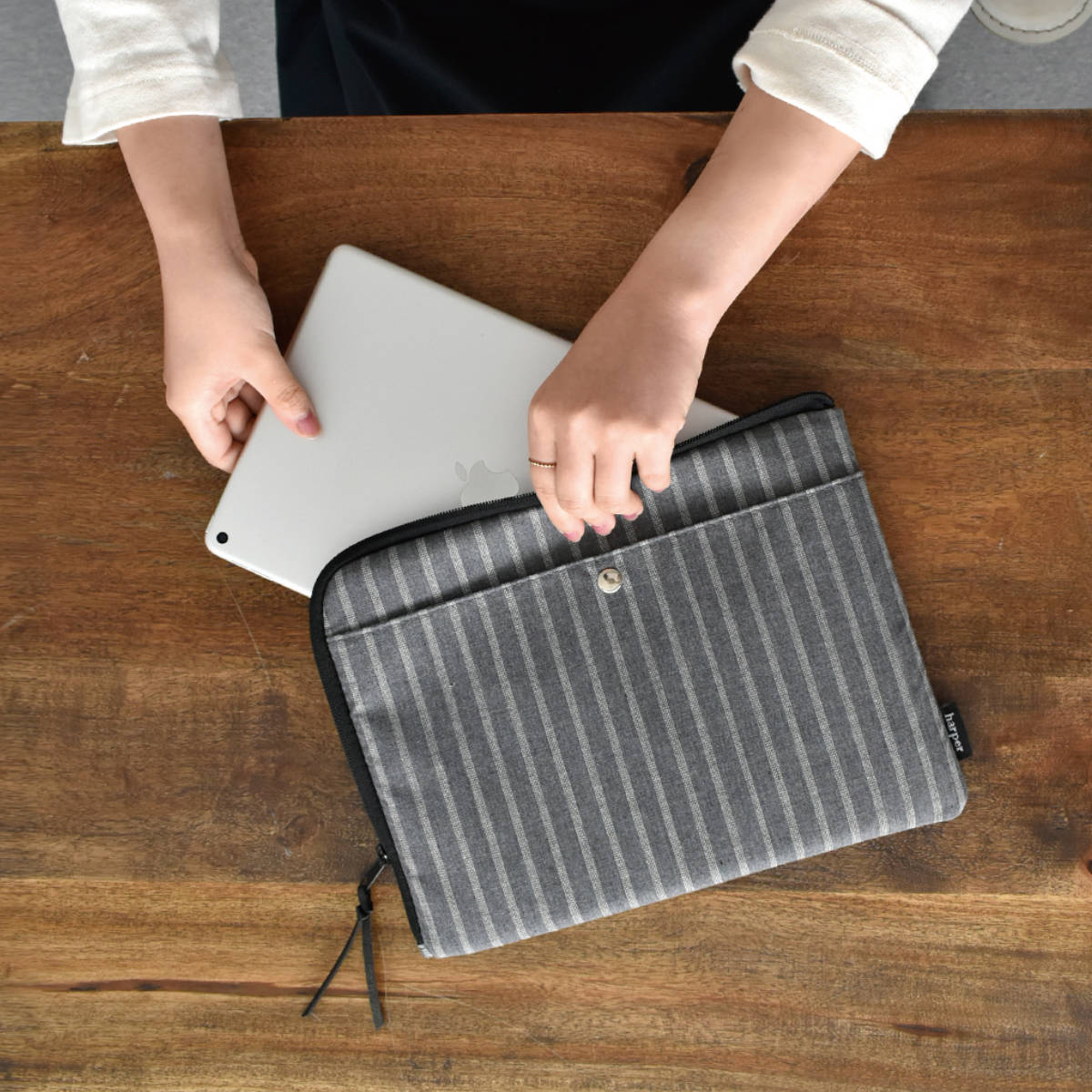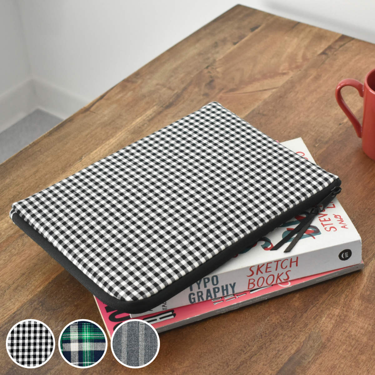 かっちりしすぎない、生地感を活かした程よいラフさがポイントのシンプルなデザインです。3パターンともユニセックスで持ちやすい柄なので、カジュアル好きな方への贈り物にもおすすめです。11インチサイズのタブレットに対応しています。8インチサイズなどのミニタブレットは、内ポケットに収められます。