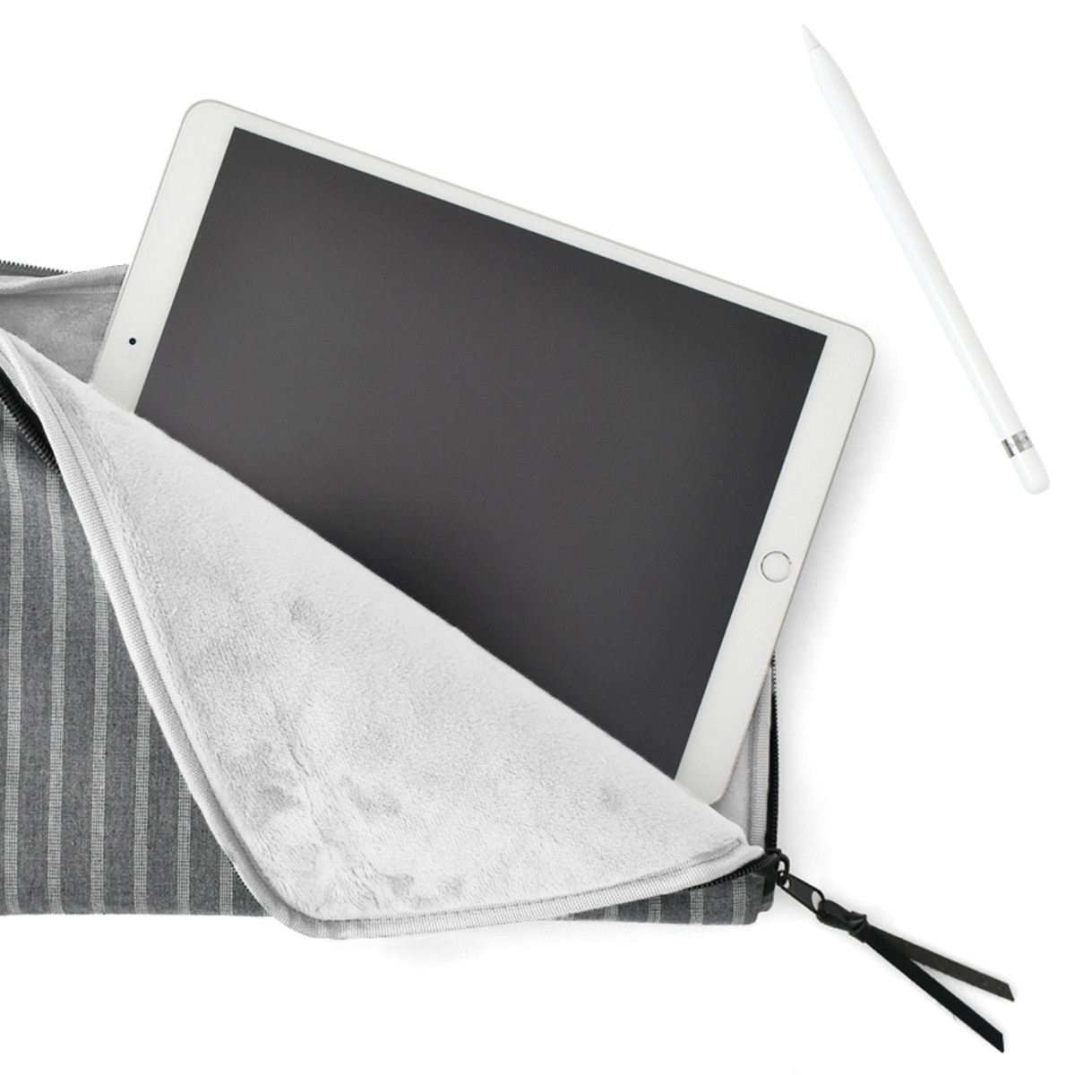 内側のマイクロファイバー生地でタブレットを優しく包みます。しっかり厚手の発泡ウレタンを中材に使っているので、持ち運びも安心です。