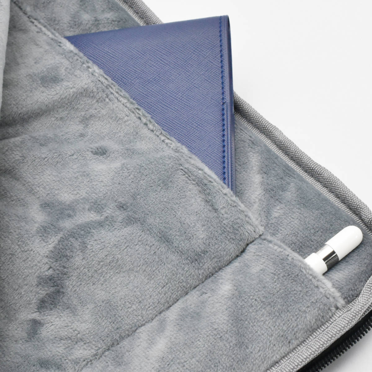 仕切られた内ポケットがついています。細長いポケットは、タブレットペンシルを入れるのに便利です。