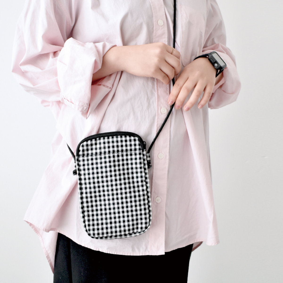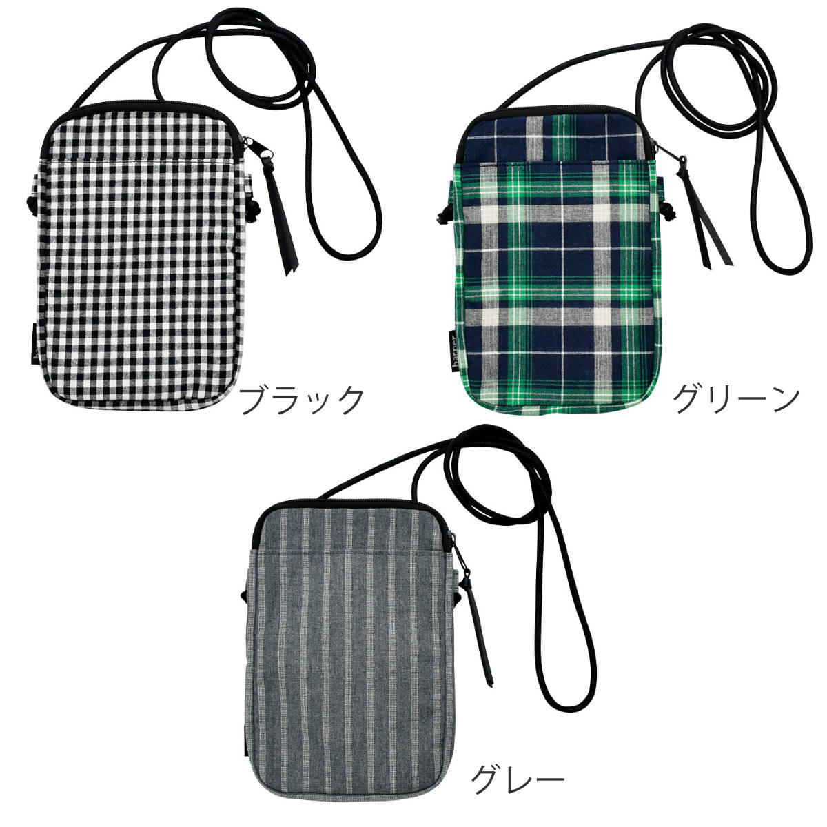 服装にも合わせやすいスタンダードな柄展開●ユニセックスで持ちやすいシンプルな柄のスマホショルダーです。