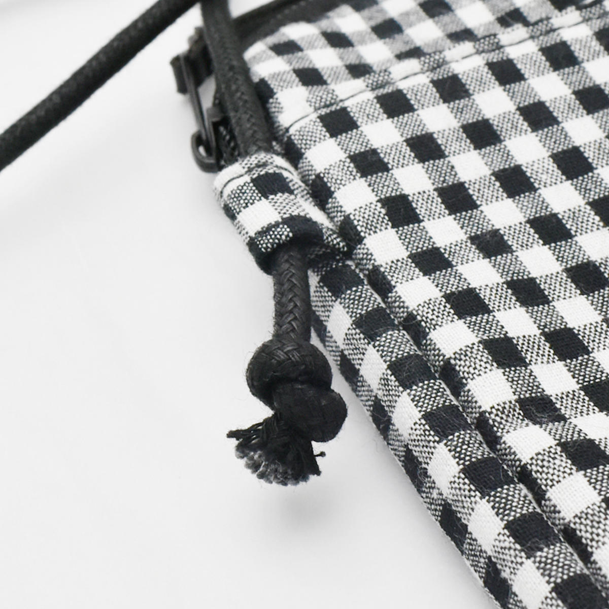 結び目を変えて長さ調節ができる紐はしっかりしたワックスコードストラップです。結び目を調節することで、お好みの長さに変えていただけます。