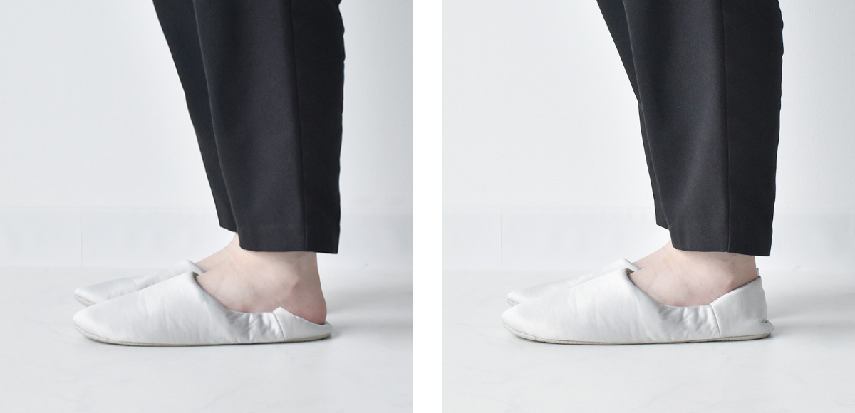 履き方を選べる2way仕様かかとを踏んで履けばラフに、かかとを上げて履くときちんと感の出るスリッパです。シーンに合わせて2通りの履き方ができます。
