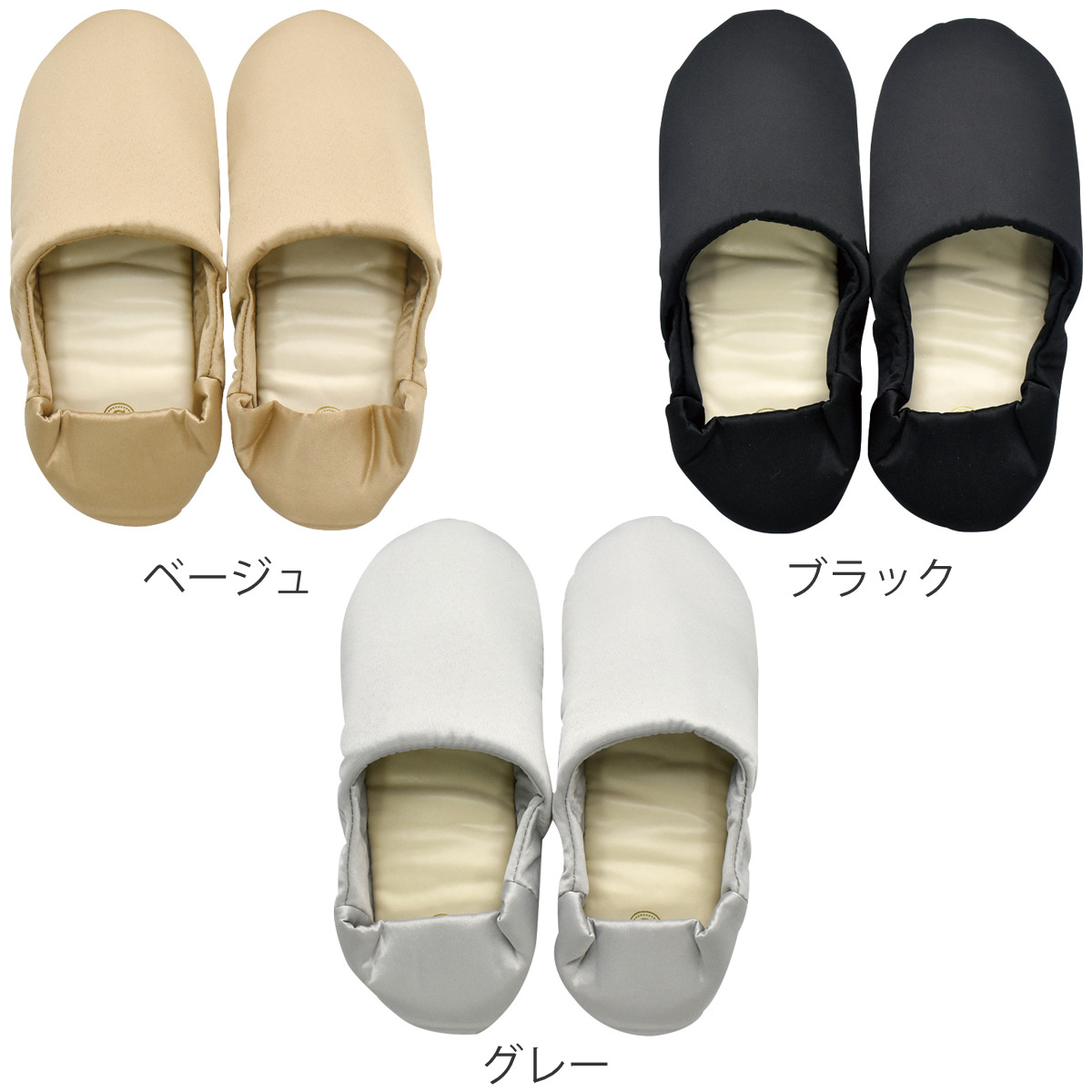 フォーマルシーンにも合わせやすい携帯スリッパコンパクトに折りたためて、持ち運びに便利な携帯スリッパです。優しい光沢感のサテン生地を使い、上品な雰囲気に仕上げました。参観や習い事での替え靴としてや、卒入学式などのフォーマルなシーンでもお使いいただけます。