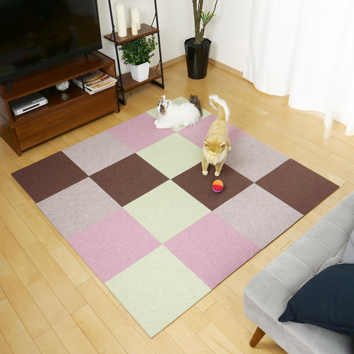 | ちょっとしたスペースに 正方形に並べると一人掛け用のソファー前などちょっとしたスペースにぴったりです。 | キッチンマットにも 横一列に並べるとキッチンマットとしても使える大きさです。 |
