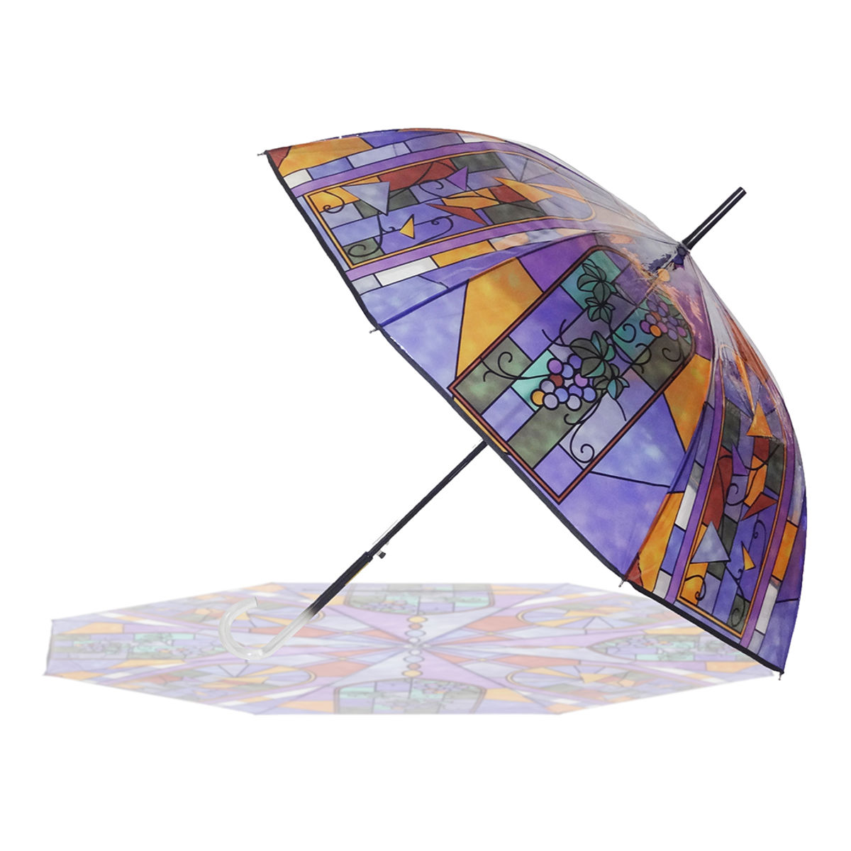 ●ポリエチレン傘の特徴である透明素材を生かし、ステンドグラスに見立てたデザインです。