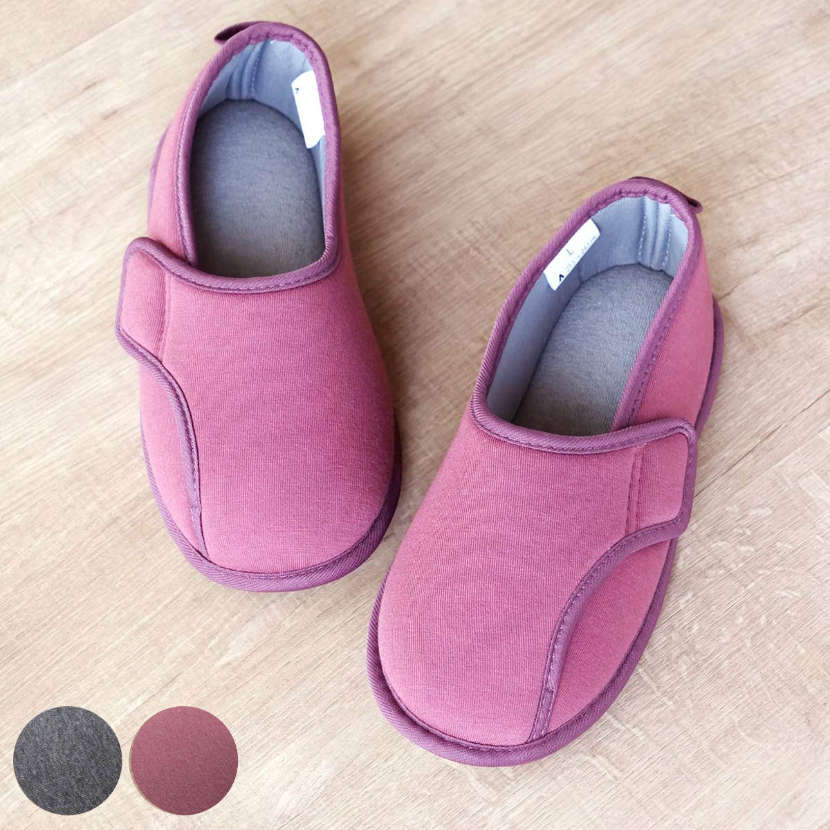 転倒の5割は室内で起きています。お家でも安全にお過ごしいただくための、動きやすく転倒しにくい設計のルームシューズです。足入れしやすいのに脱げにくく、足に心地よくフィットします。