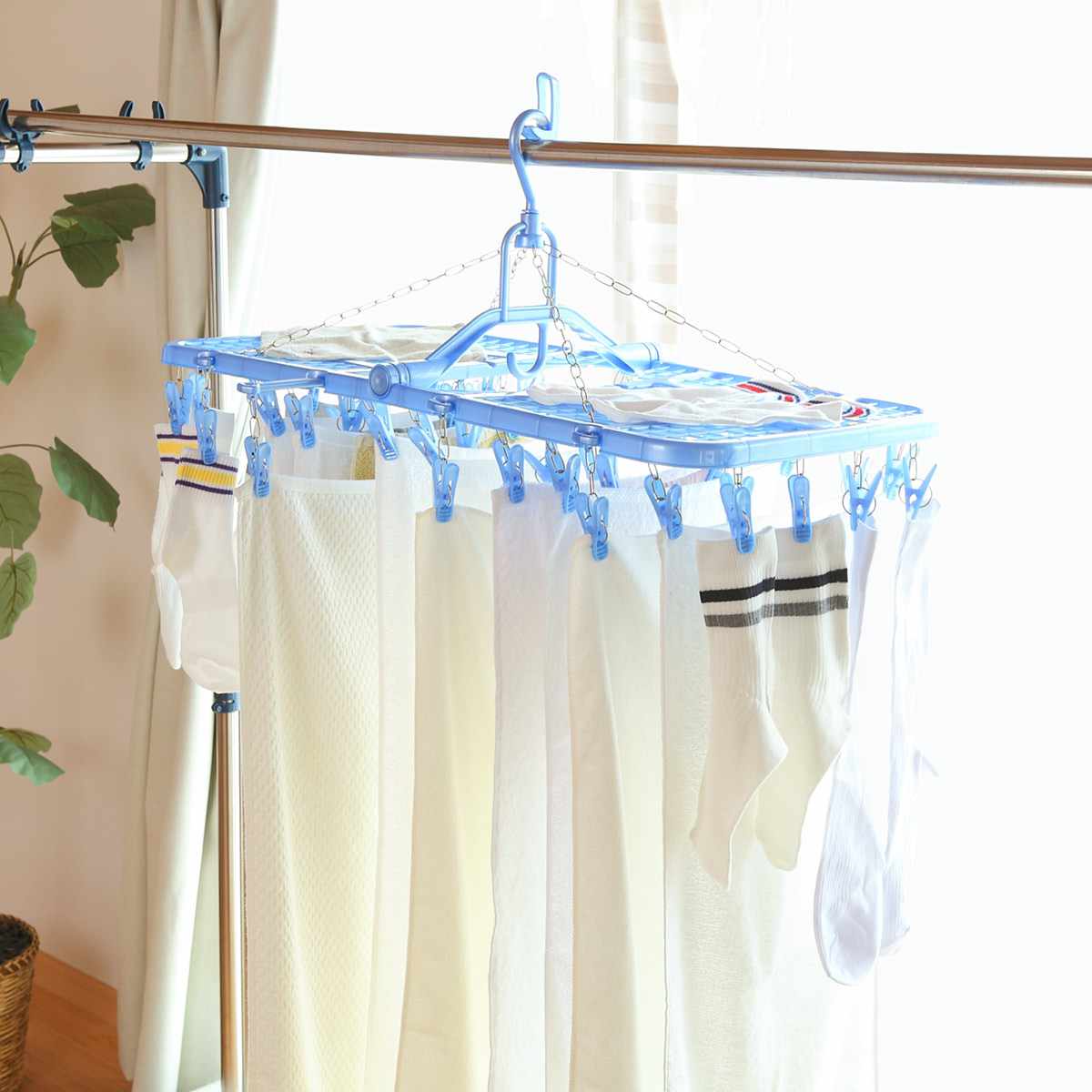 ●洗濯ピンチが44個付いた洗濯物干しハンガーです。