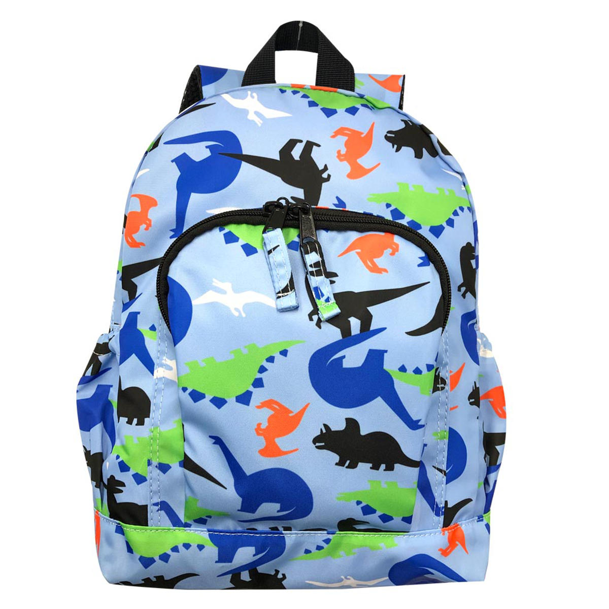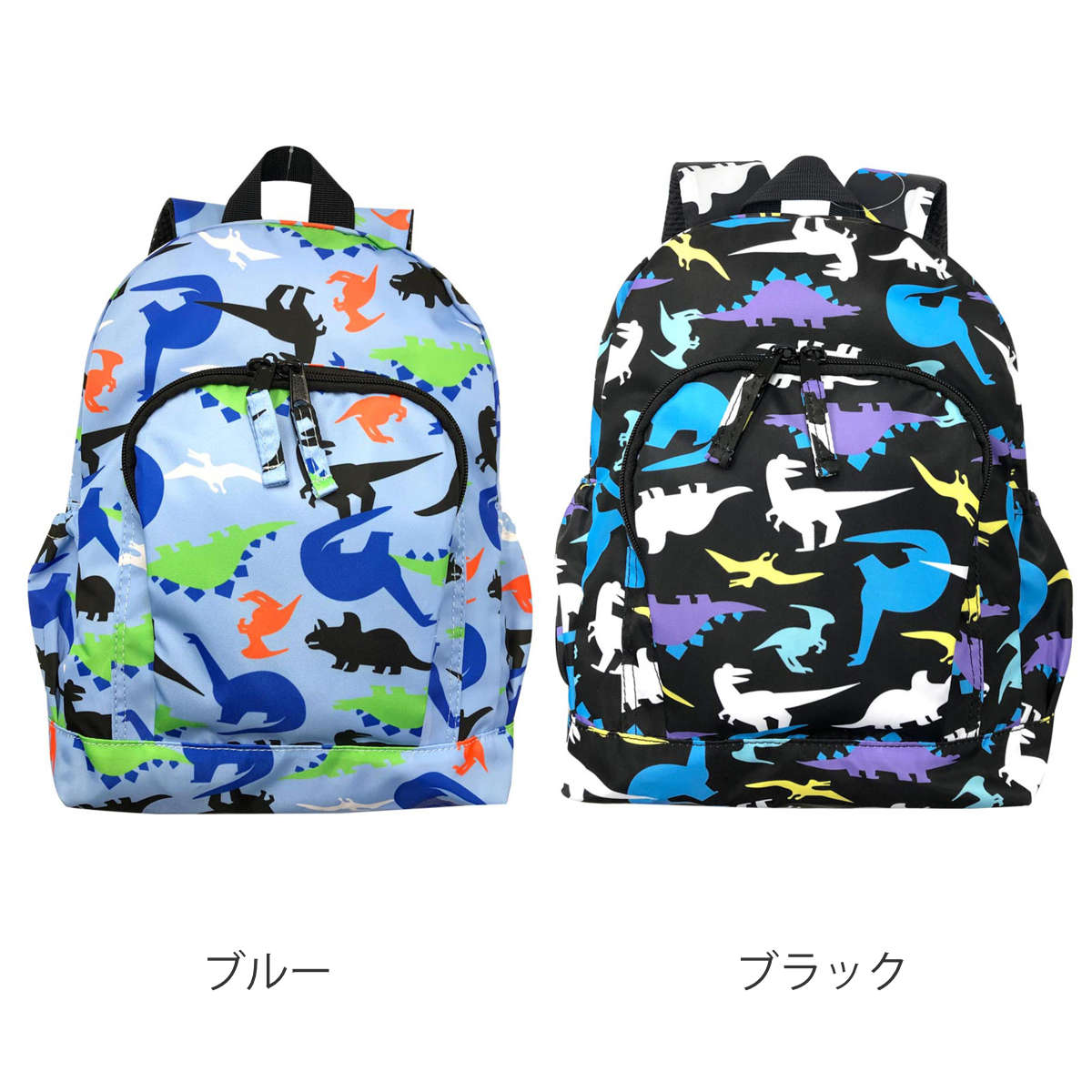 通園やおでかけにピッタリの恐竜柄の可愛いリュック色々な恐竜のシルエットのポップな柄が目を惹きます。軽量で使いやすく、チェストベルト付きなので動いてもリュックがずれにくいです。肩紐と背中は通気性の良い蒸れにくいメッシュ素材なのでお子様が快適にお使いいただけます。