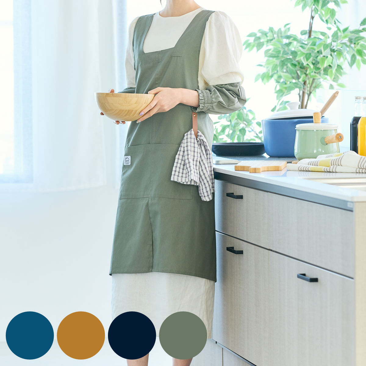 ●安定感のある太めの肩ひもなので長時間付けていても疲れにくく、作業やお料理がはかどります。