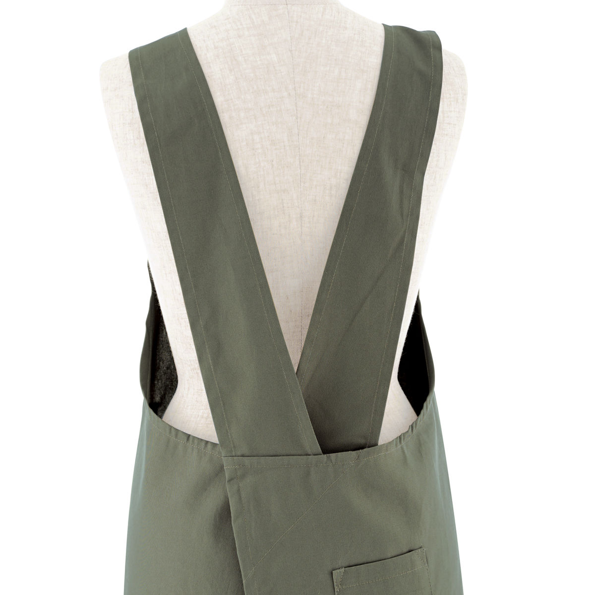 長時間つけていても疲れにくいバッククロスタイプで、紐を結ぶ必要がなく被るだけでいいので素早く楽に身につけられます。また、長時間つけいていても疲れにくいから作業やお料理がはかどります。