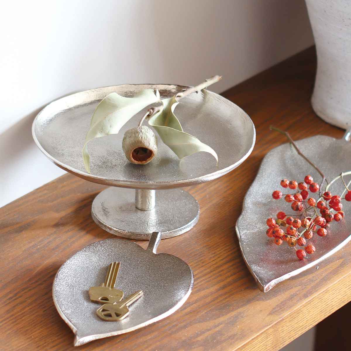ラフな風合いが魅力の「santolina」シリーズアルミ本来のシルバー色を活かして仕上げたsantolina(サントリナ)シリーズ。1点1点ハンドメイドで仕上げているため、形が歪なところや、表面の凹凸の個体差など多様な表情が魅力のシリーズです。