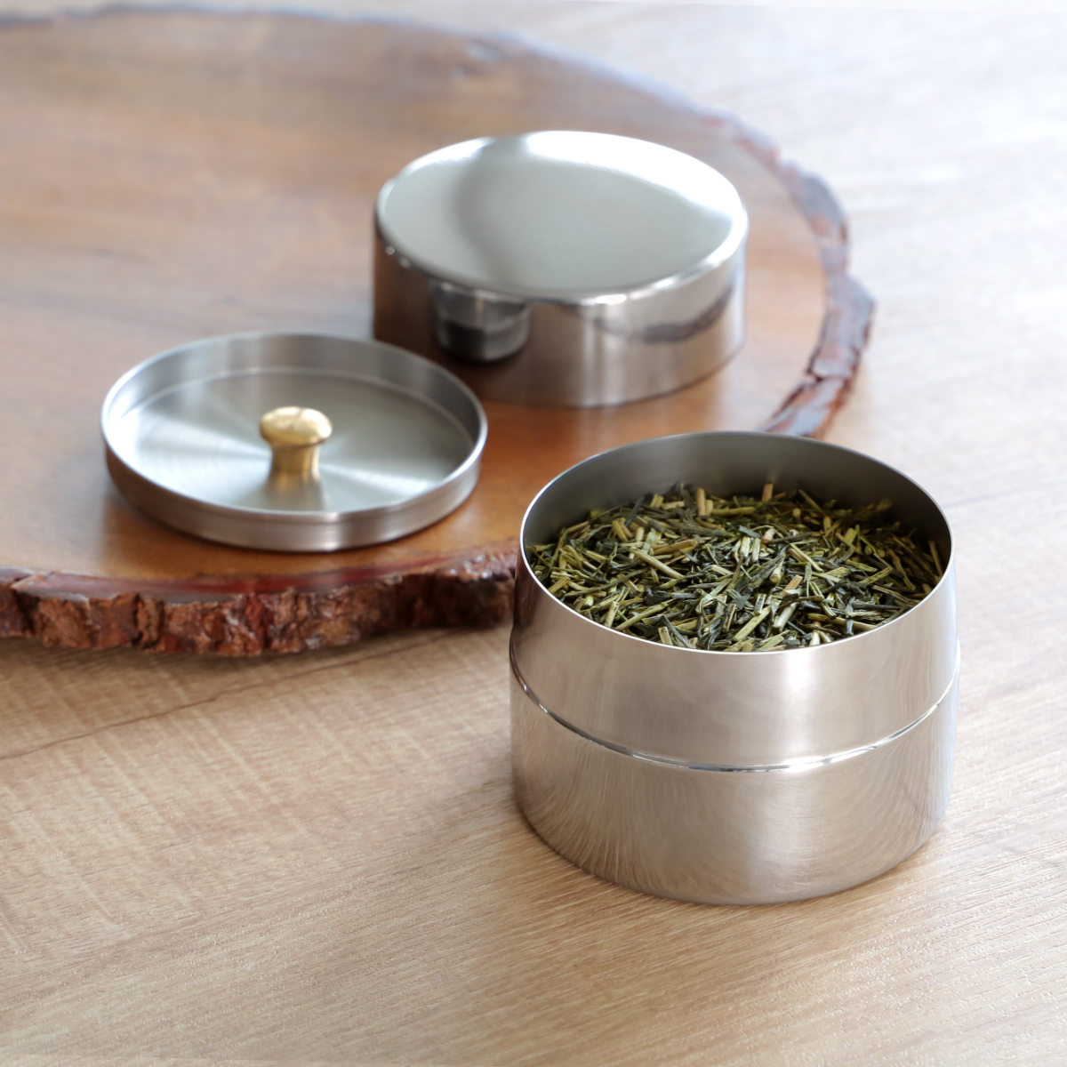 サビにくく衛生的で、耐久性に優れた18-8ステンレススチールを使用しています。ステンレス製の茶筒は、遮光性が高く、におい移りもしにくいので茶葉の風味を損ねません。日本茶だけでなく、紅茶やコーヒーの保存にも最適です。※茶さじは別売りです。