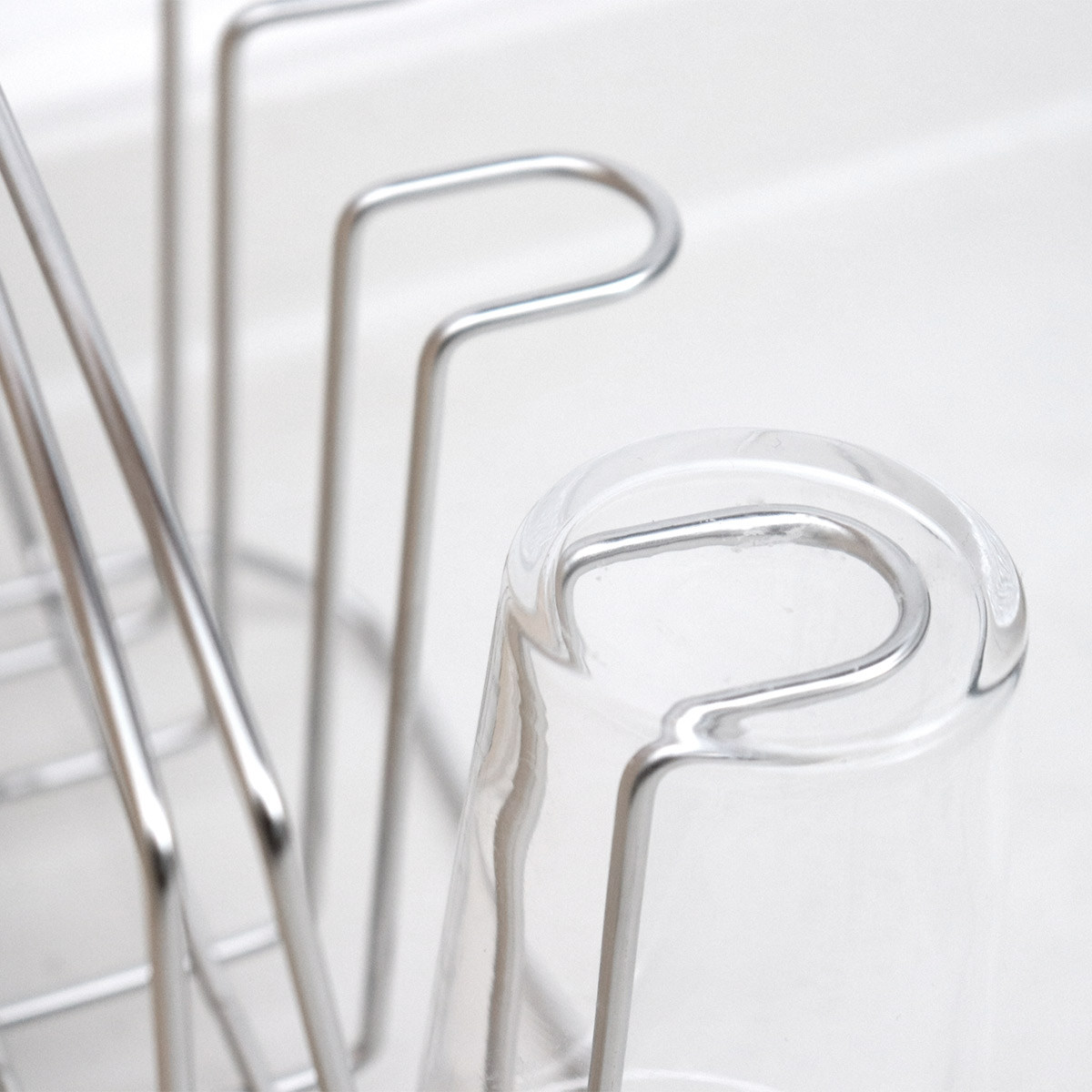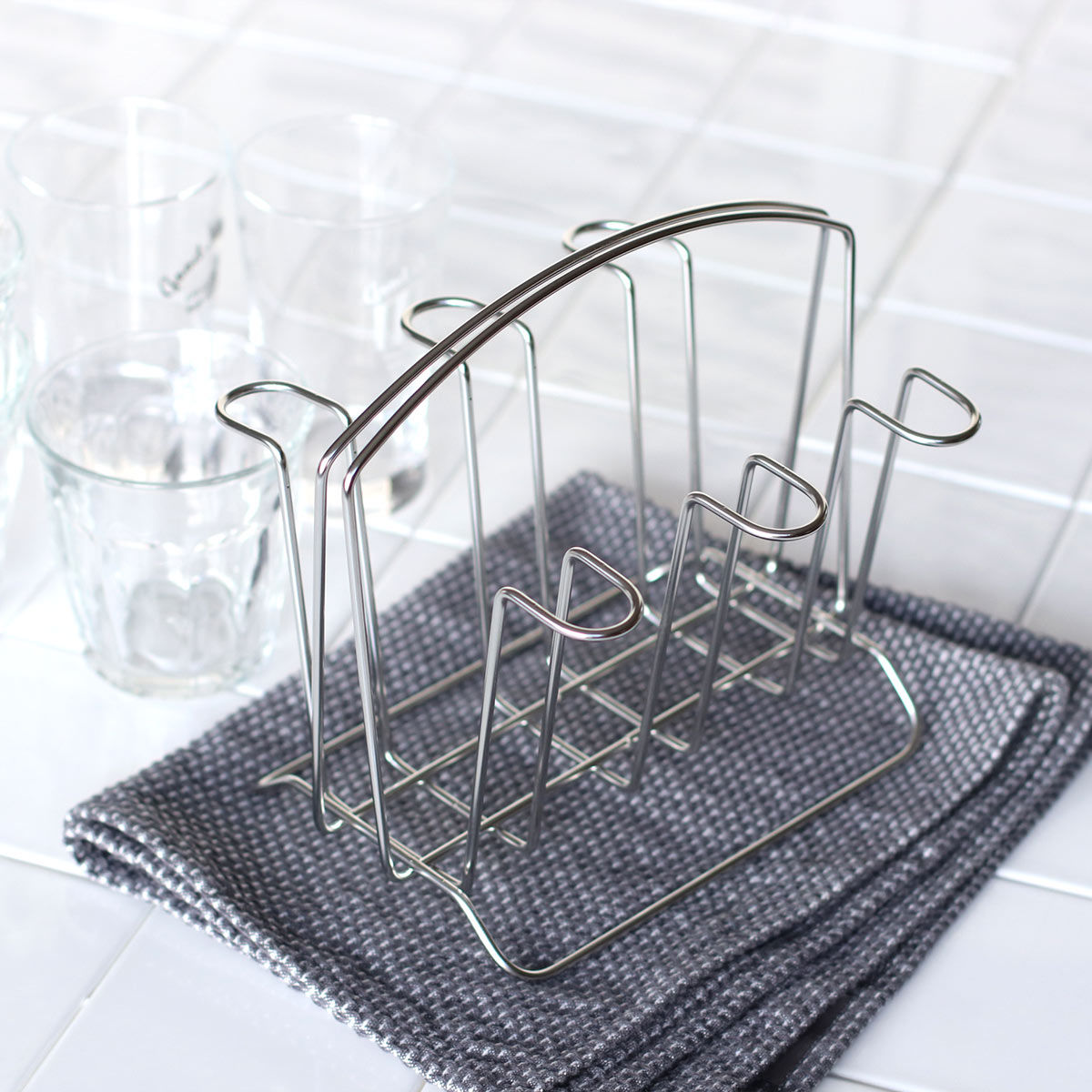 水周りでも安心してお使いいただける丈夫な素材です。グラスの他、水筒や洗った牛乳パックの水切りとしても活躍。スッキリ省スぺ―スでワークトップを圧迫しません。