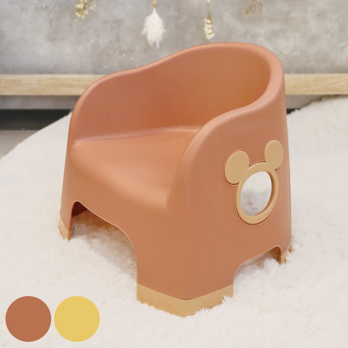 音の鳴らないベビーチェア丸みをおびたフォルムがかわいい、座るたびに音がしない静かなタイプのベビーチェアです。お部屋に馴染みやすい落ち着いたカラーリングです。体重30kgまで使用可能なので、ベビーからキッズまで長くお使いいただけます。また、床との接触部分には滑り止めが付いています。