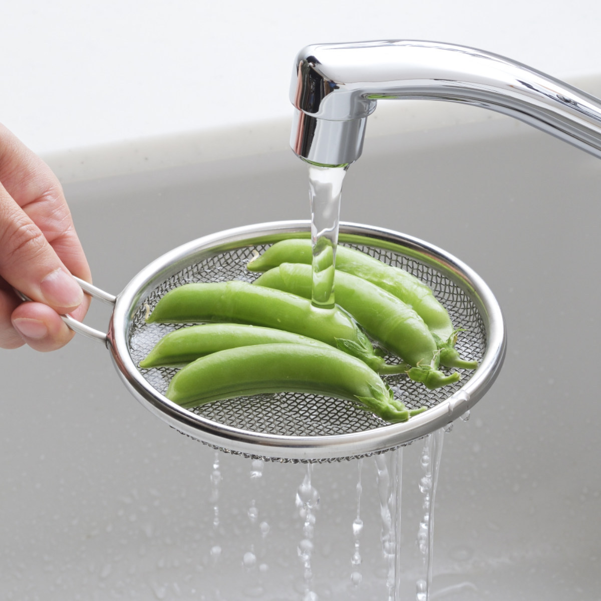 | 材質 | アミ:18-8ステンレス 枠:18-8ステンレス(板厚0.4mm) 芯材・取っ手:18-8ステンレス |