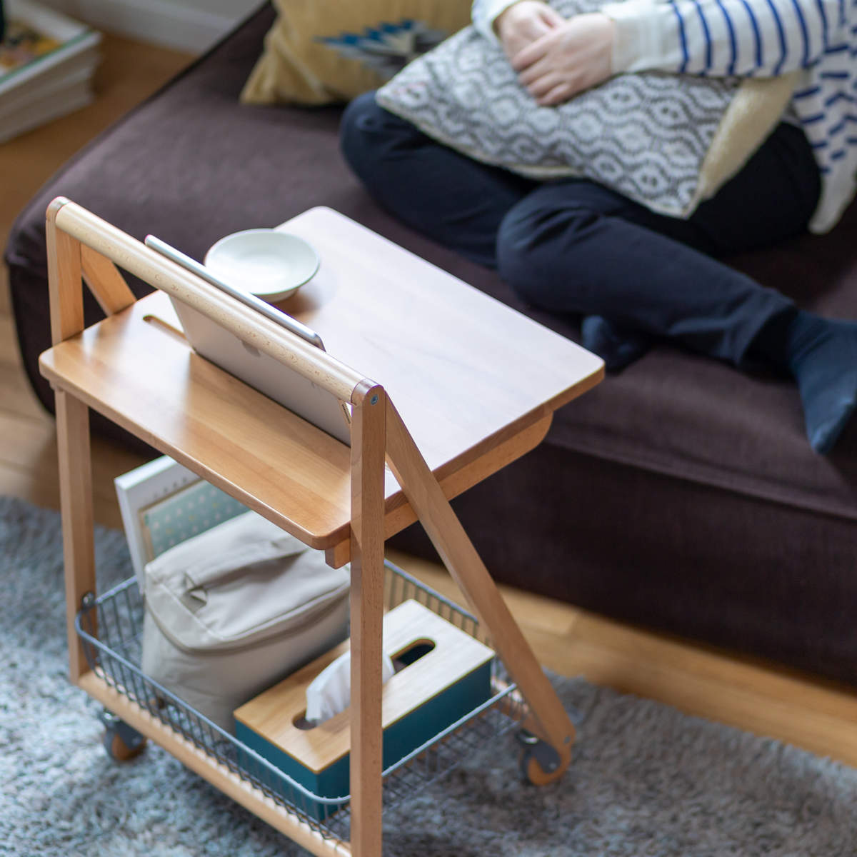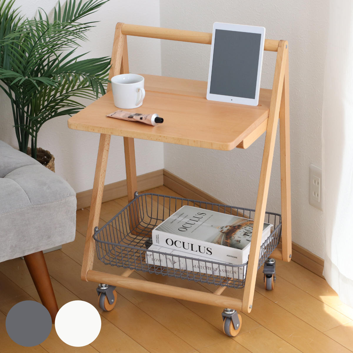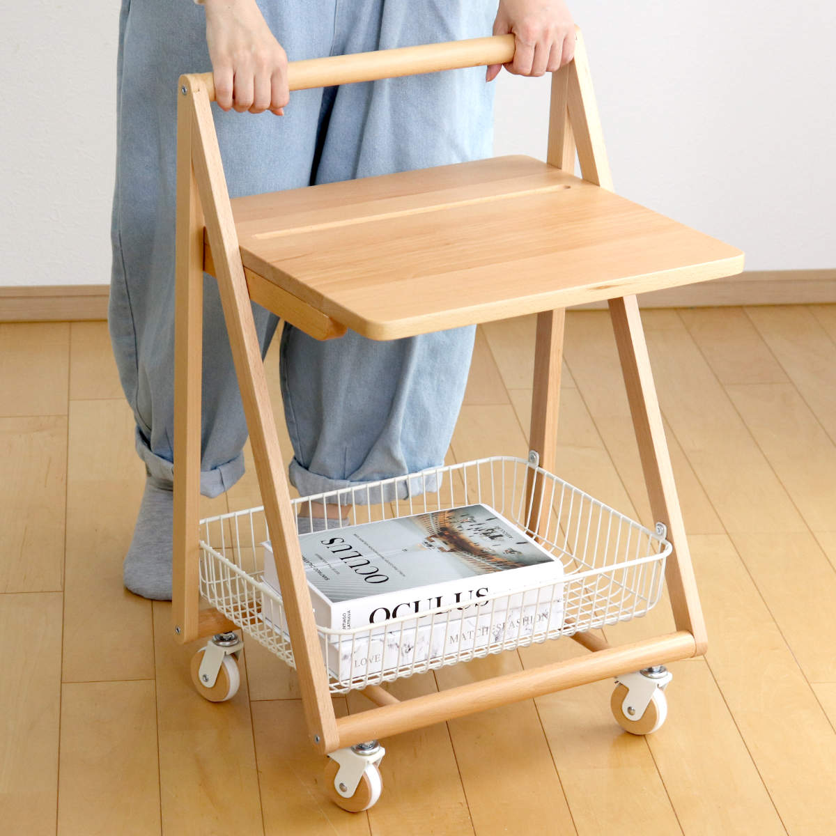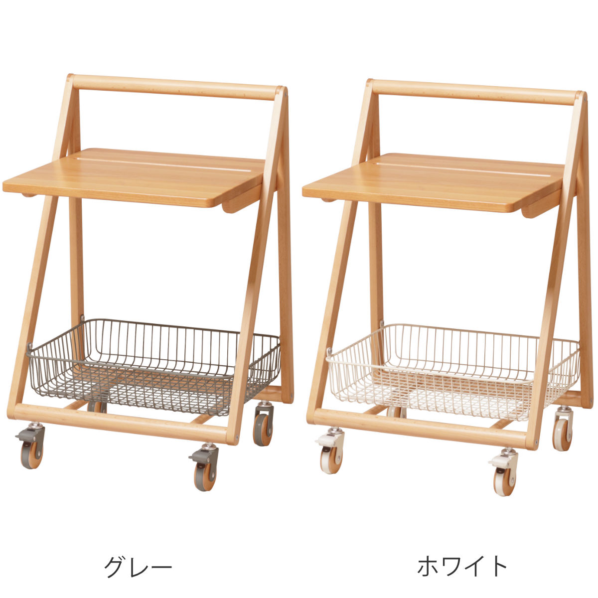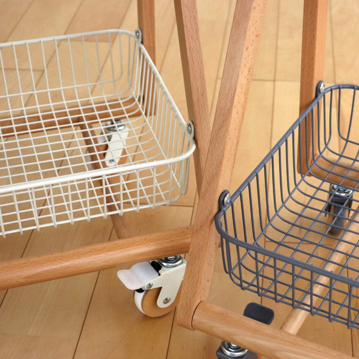 | 材質 | 天板:天然木(ビーチ)、ポリウレタン塗装 フレーム:天然木(ビーチ)塗装 カゴ:スチール、粉体塗装 |