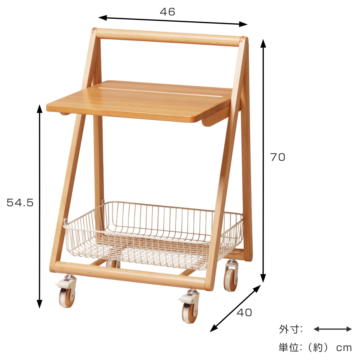 | サイズ | 約 幅46×奥行40×高さ70(cm) 天板高さ:54.5cm |