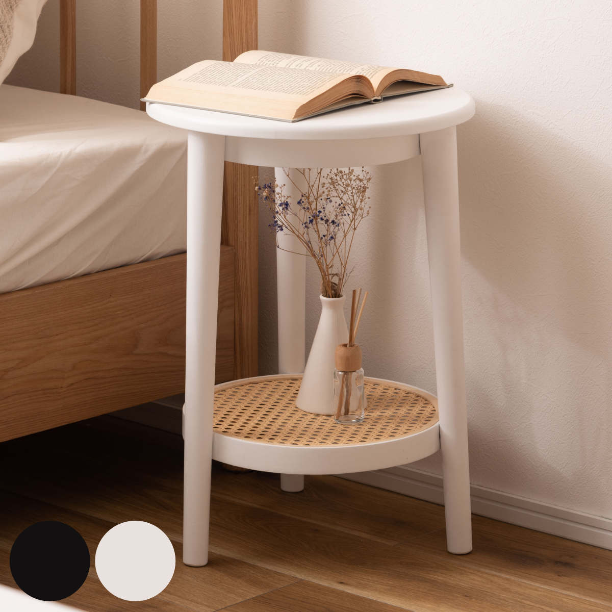 収納 棚板付き 棚 おしゃれ ナチュラル 北欧風 韓国風 インテリア ディスプレイ 白 黒 家具 アジアン家具 インテリア家具 ディスプレイ台 寝室 玄関 リビング ミニテーブル table 異素材 シンプル コンパクト 韓国インテリア ワンルーム 一人暮らし 新生活 大人 女子 可愛い かわいい こなれ感 ホワイト ブラック 直径36cm LH13368