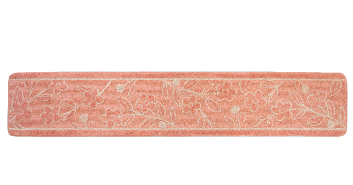 キッチンをくつろぎの空間に北欧調のフラワーモチーフがおしゃれな、ポリエステル製キッチンマット240cmです。薄手タイプなのでゴミが入り込みにくく、キッチン最下段の引き出しにも引っ掛かりません。優しく温かみのあるデザインが、キッチンをくつろぎ空間に演出します。