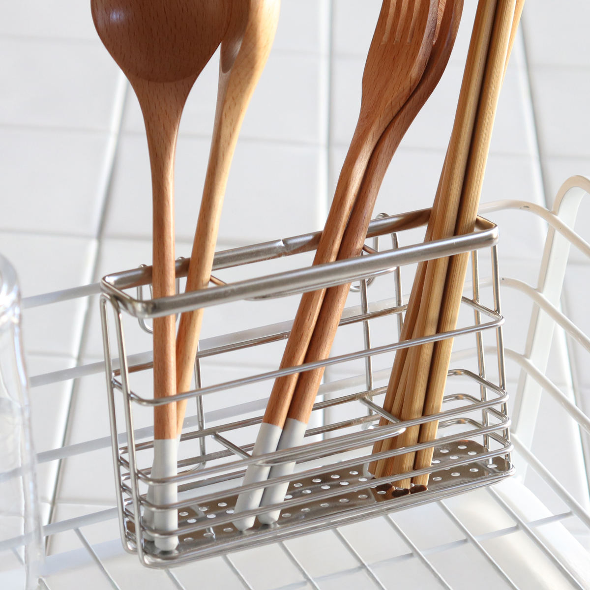 ●水切りバスケットと組み合わせて使うことで、箸やスプーン、フォークなどを立てて水切りできます。
