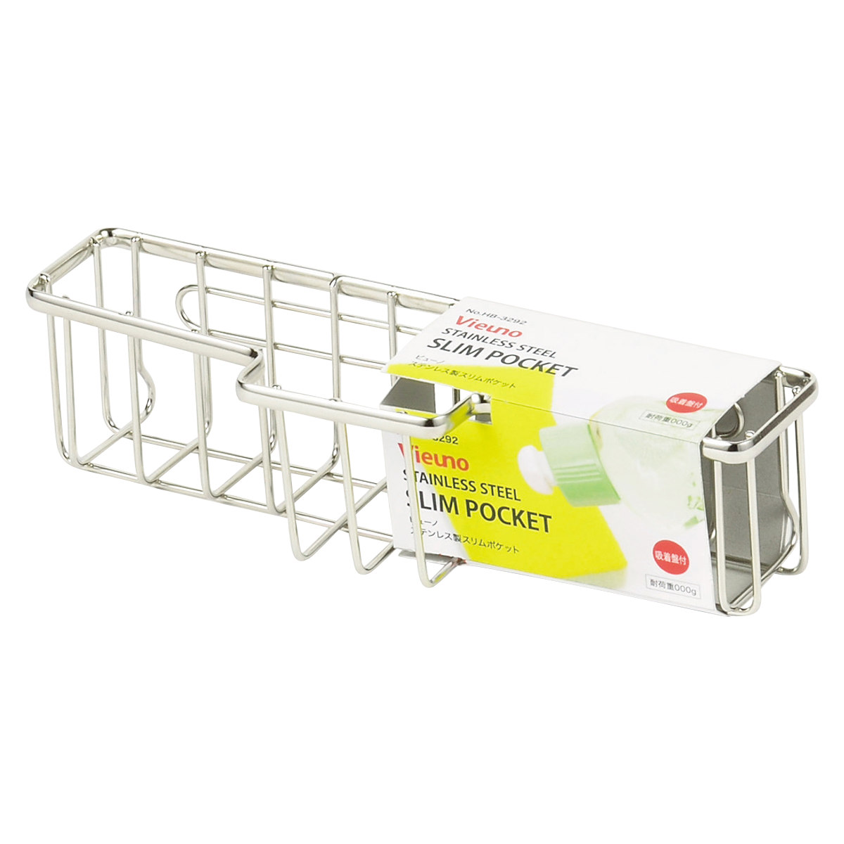 スポンジラック ビューノ ステンレス製スリムポケット ( ステンレス スポンジホルダー スポンジ入れ スポンジ置き スポンジ収納 たわしラック 洗剤立て )