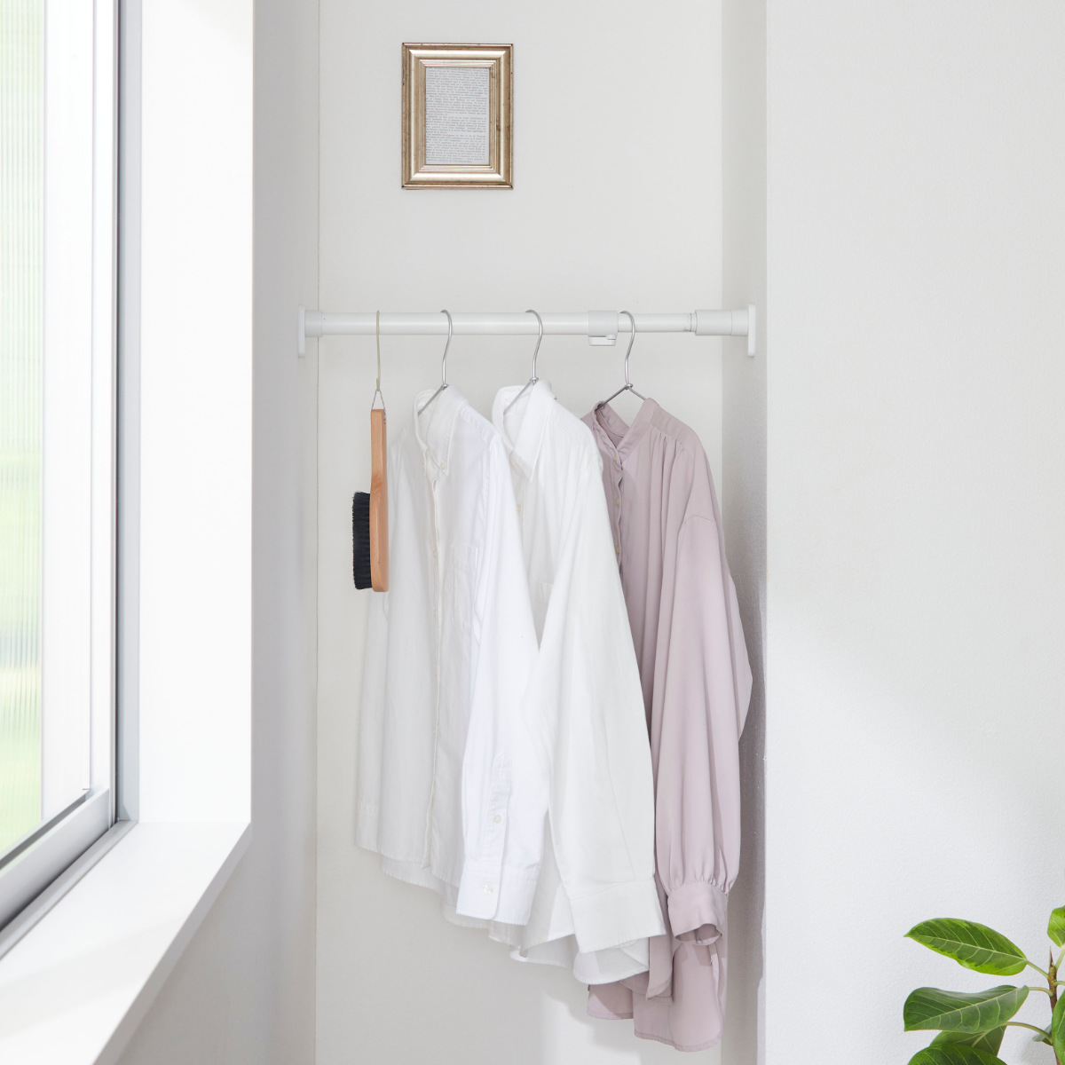 暮らしにフィットするシンプルな突っ張り棒シンプルなので様々なテイストに馴染むシンプルな突っ張り棒です。マットな質感のホワイトなので落ち着いた雰囲気になっています。お家の中のデットスペースを利用して収納力をアップできるので、クローゼットやキッチン、ランドリーなど様々な場所で大活躍してくれます。