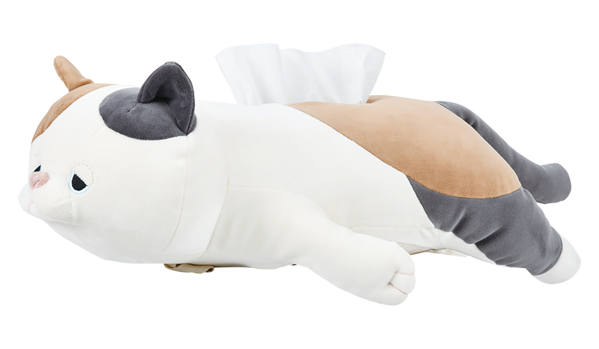 ミケネコのゆずすやすや眠る姿がモチーフのねむねむアニマルズシリーズのティッシュカバーです。だらんとした寝姿がかわいく、しっとり&もちもちのやさしい触り心地が魅力です。リビングや寝室、子供部屋など、どこに置いても癒されるデザインです。