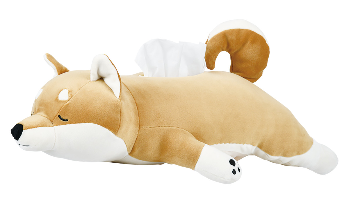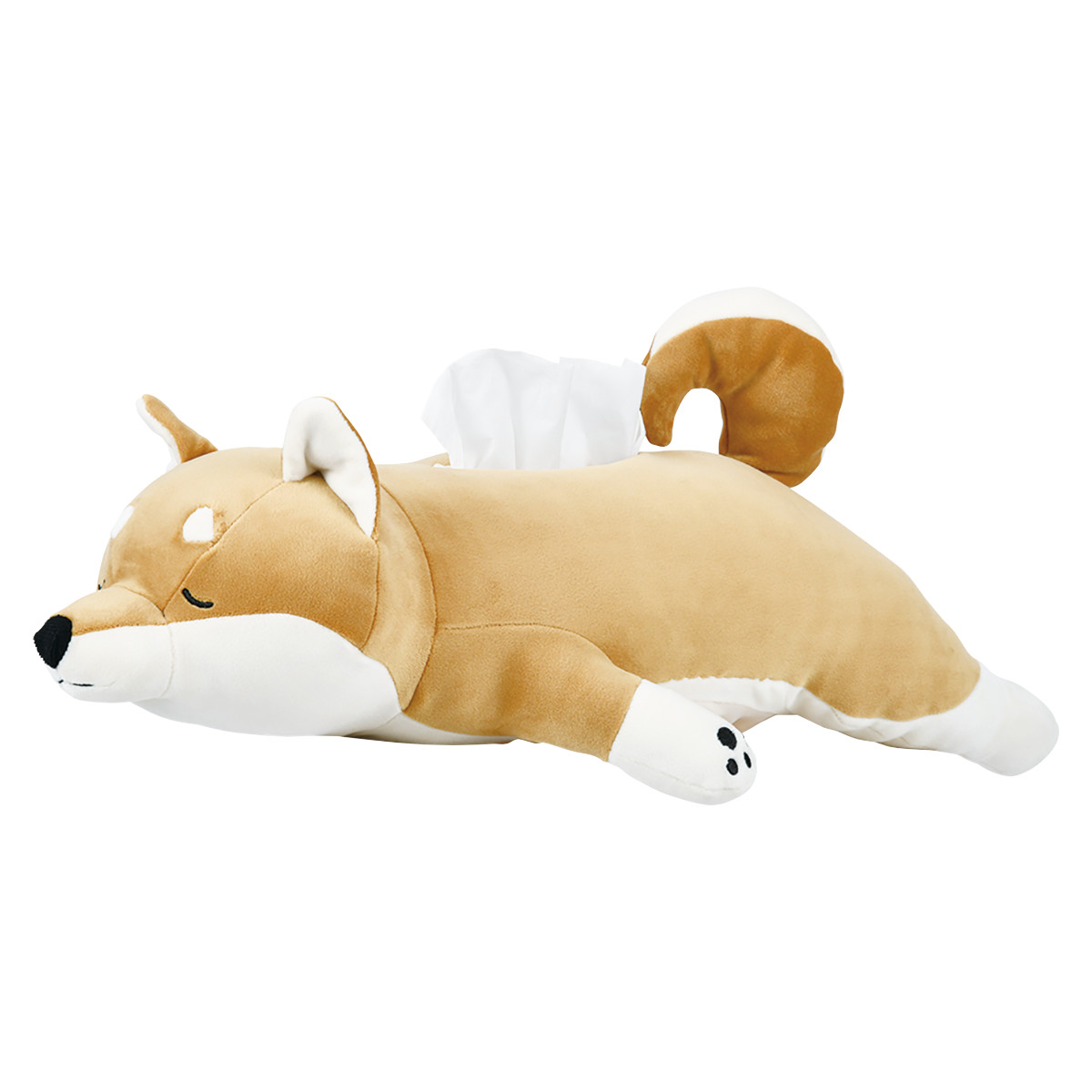 柴犬のコタロウすやすや眠る姿がモチーフのねむねむアニマルズシリーズのティッシュカバーです。だらんとした寝姿がかわいく、しっとり&もちもちのやさしい触り心地が魅力です。リビングや寝室、子供部屋など、どこに置いても癒されるデザインです。