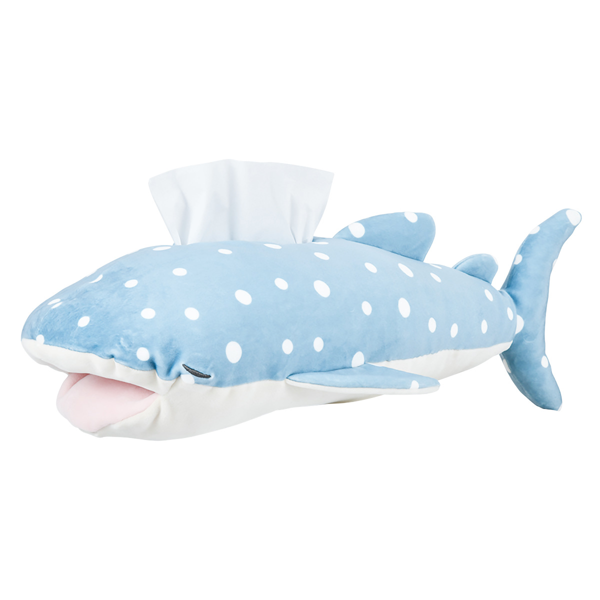 ジンベエザメのじんべえさんすやすや眠る姿がモチーフのねむねむアニマルズシリーズのティッシュカバーです。だらんとした寝姿がかわいく、しっとり&もちもちのやさしい触り心地が魅力です。リビングや寝室、子供部屋など、どこに置いても癒されるデザインです。