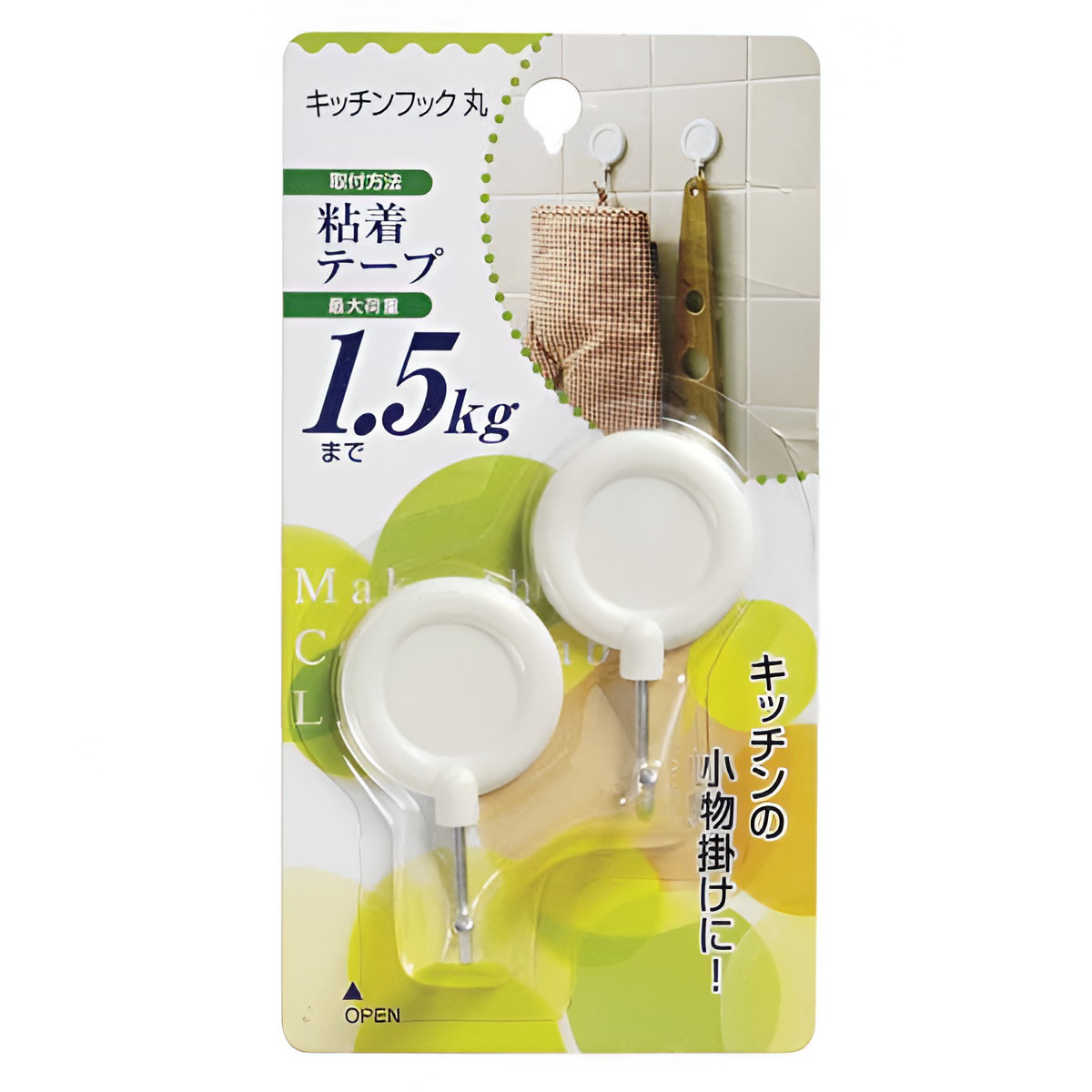 フック キッチンフック丸 2個入り 粘着テープ ( 粘着フック 丸 粘着 収納 壁掛け 引っ掛け 吊り下げ キッチンフック キッチン収納 耐荷重1.5kg 小物収納 )