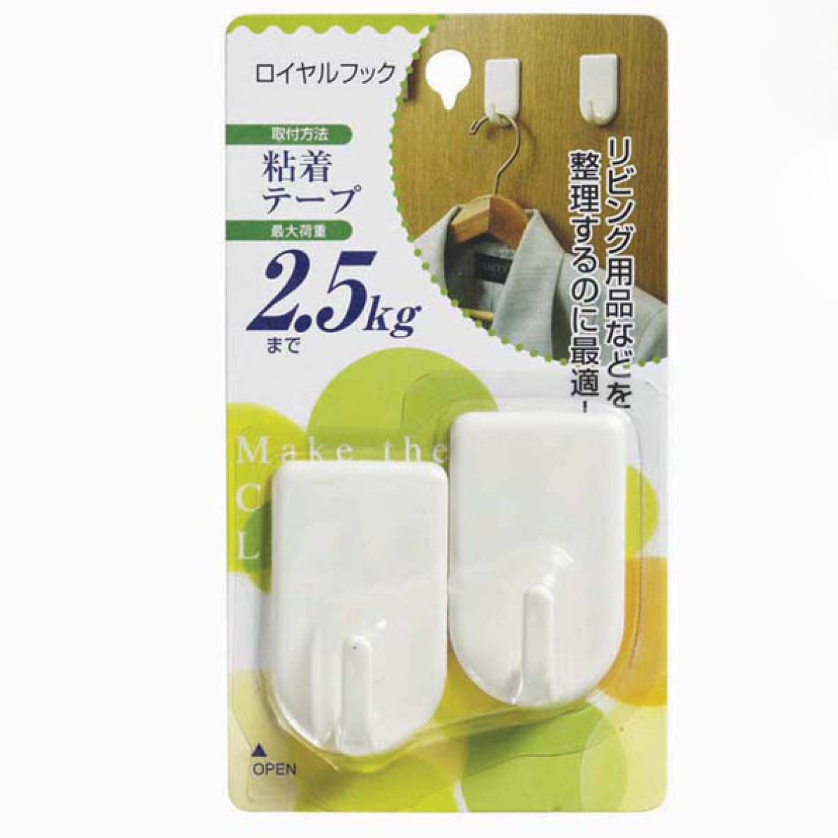 ロイヤルフック 耐荷重2.5kg ( 粘着 収納 壁 引っ掛け 壁掛け 吊り下げ 壁面収納 粘着テープ 小物掛け )